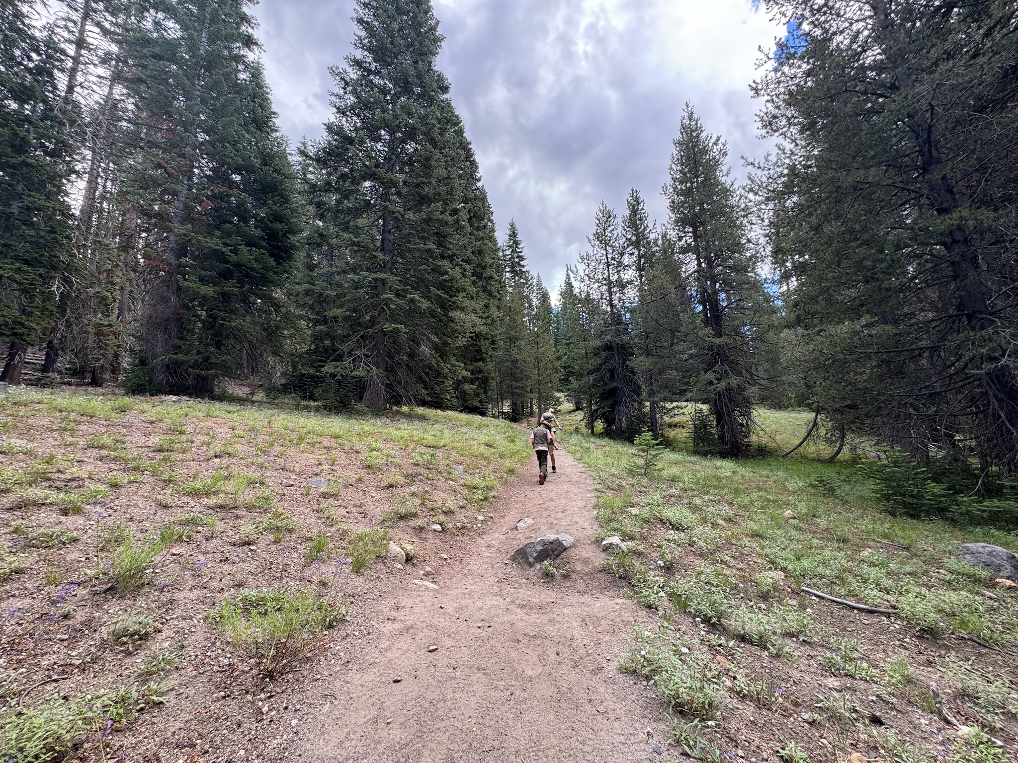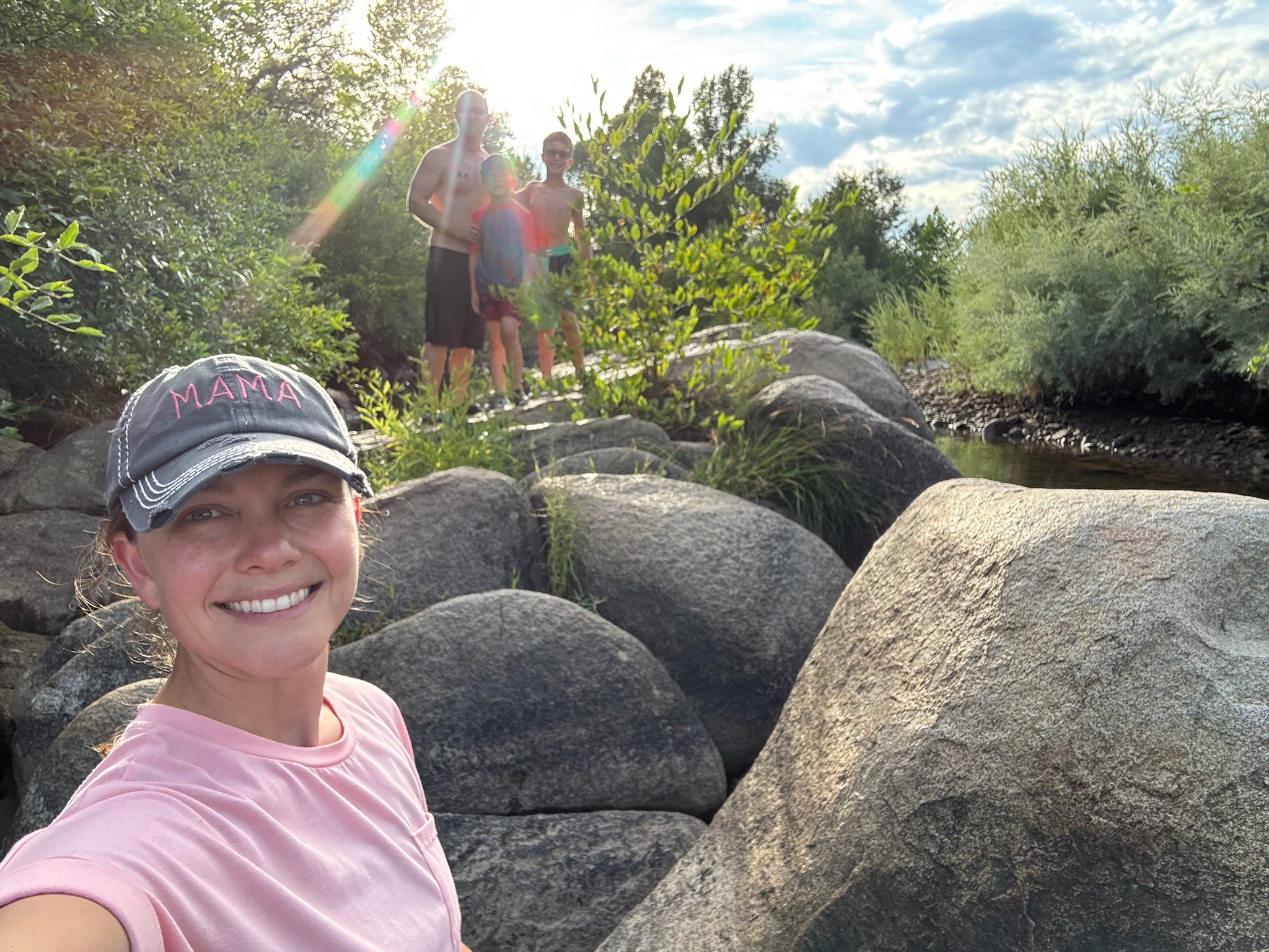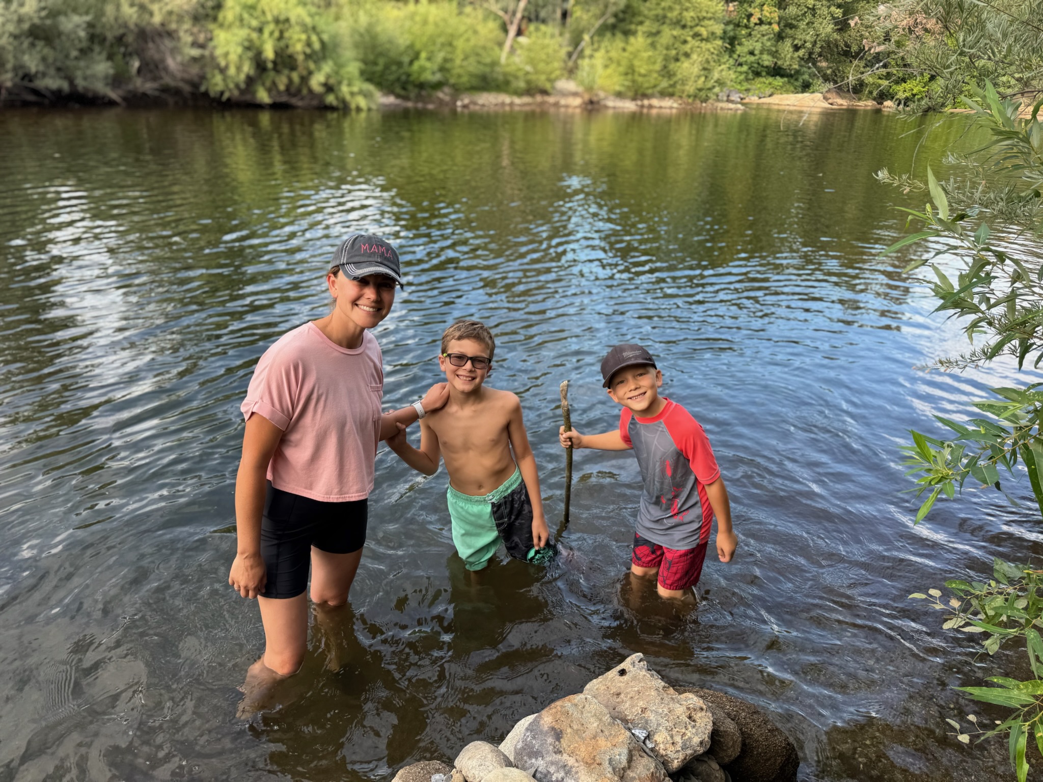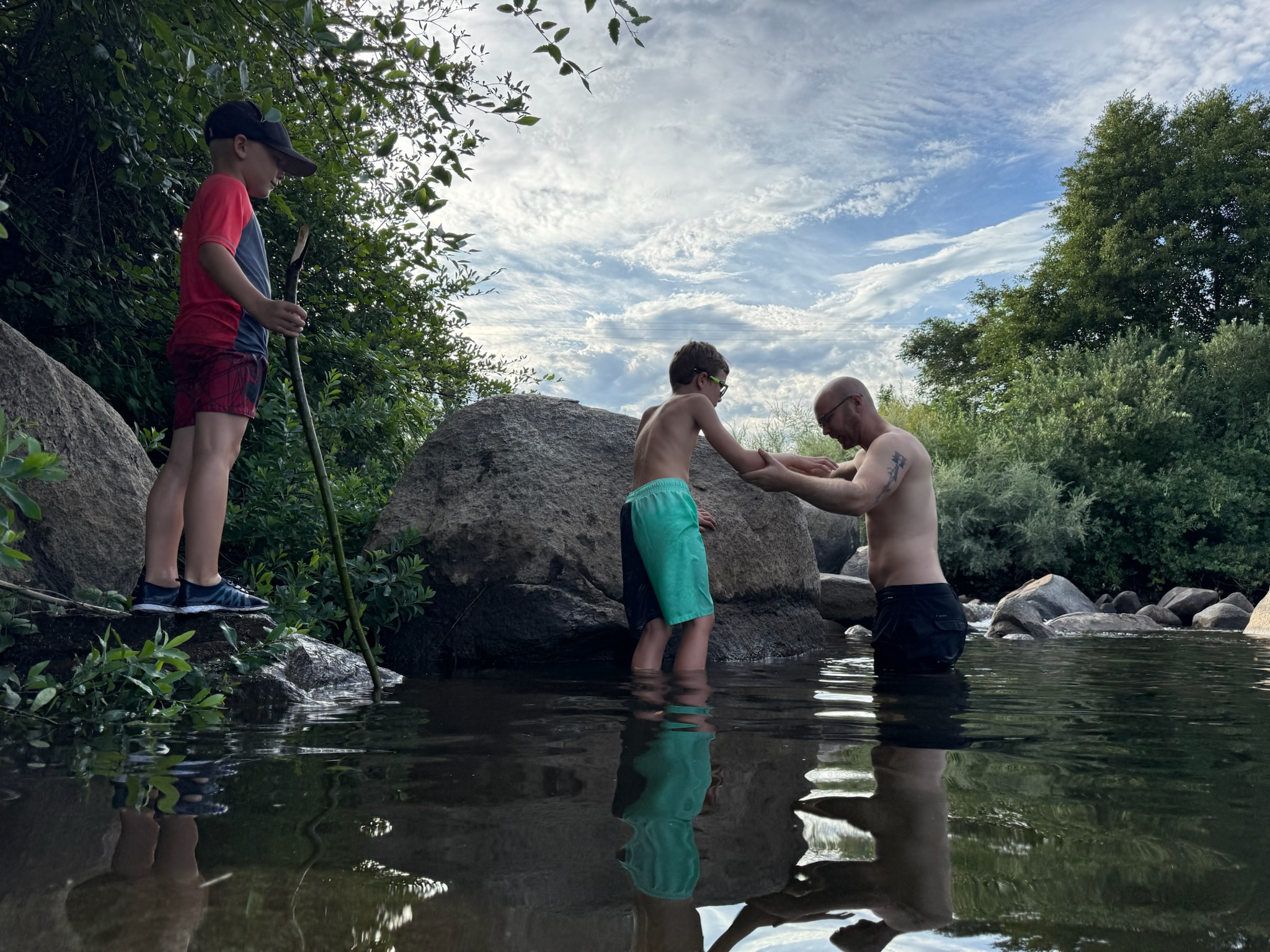 Even though it was a more crowded hike, the end was worth the site. It was sort of like a mini-Yellowstone with mud pots boiling and steaming out of the ground. It was weird passing by a flowing stream that felt like bath water to the touch! The trail led down to a manmade boardwalk and was a nice little walk through the steaming mud pots before going back up the mountain. It started raining on us on our hike back with thunderstorms in the distance. We didn’t mind though- it turned it into even more of an adventure! The kids passed out on the drive back down the mountain and back to camp. We finished our day with some fishing in Hat Creek, and even got to cook up some of that fish for dinner!