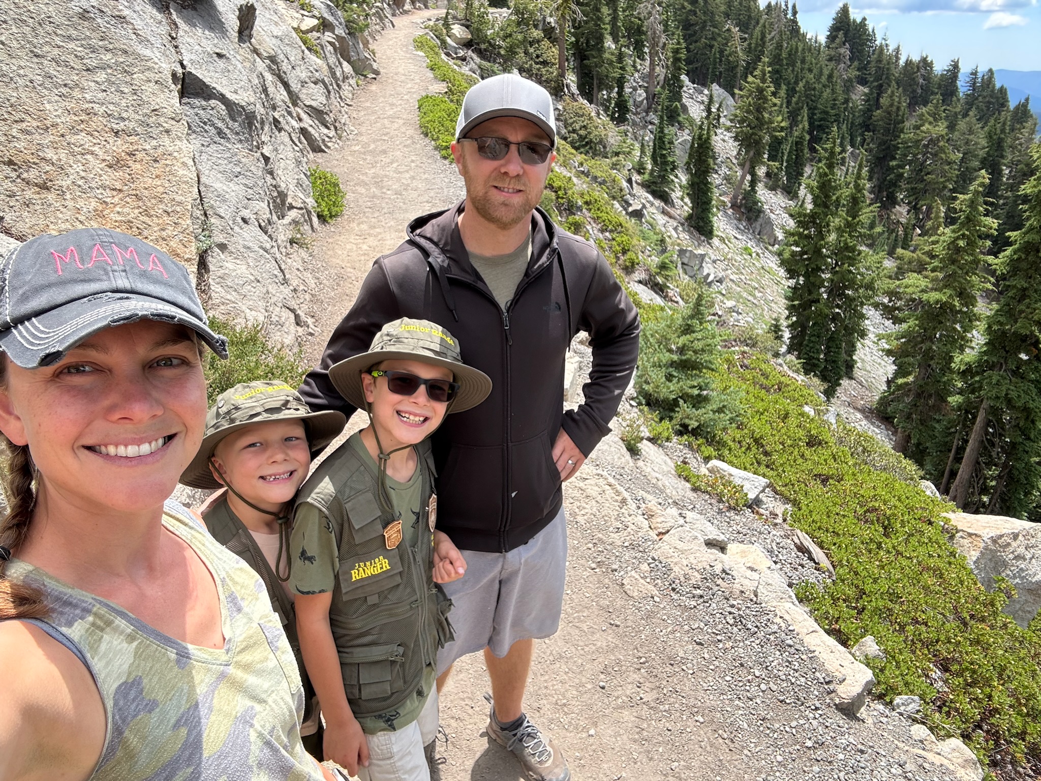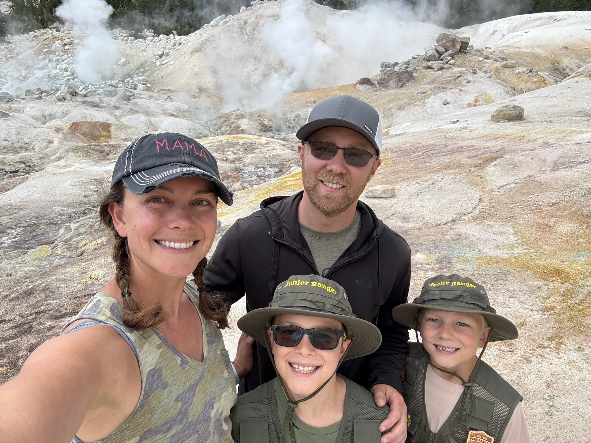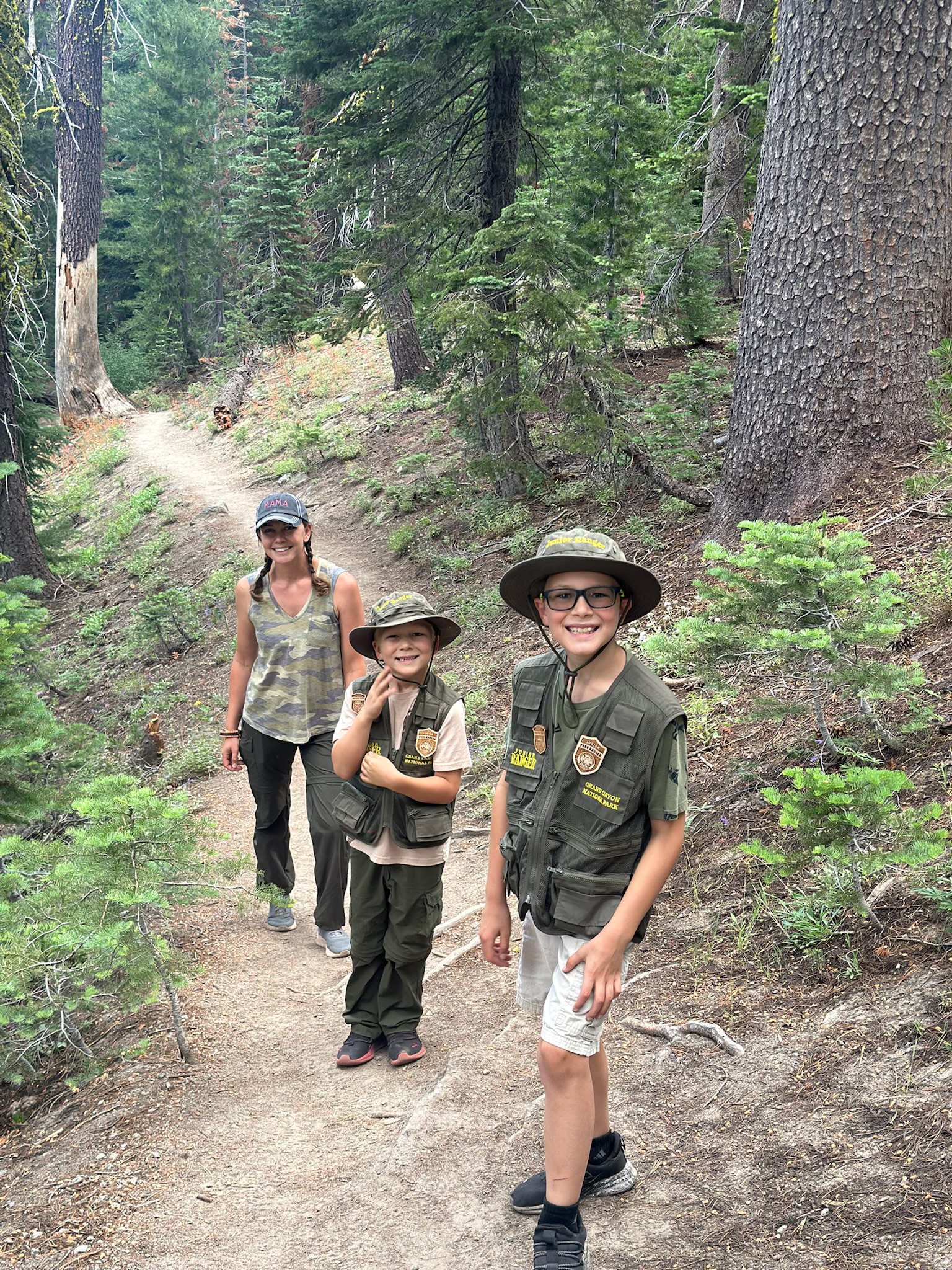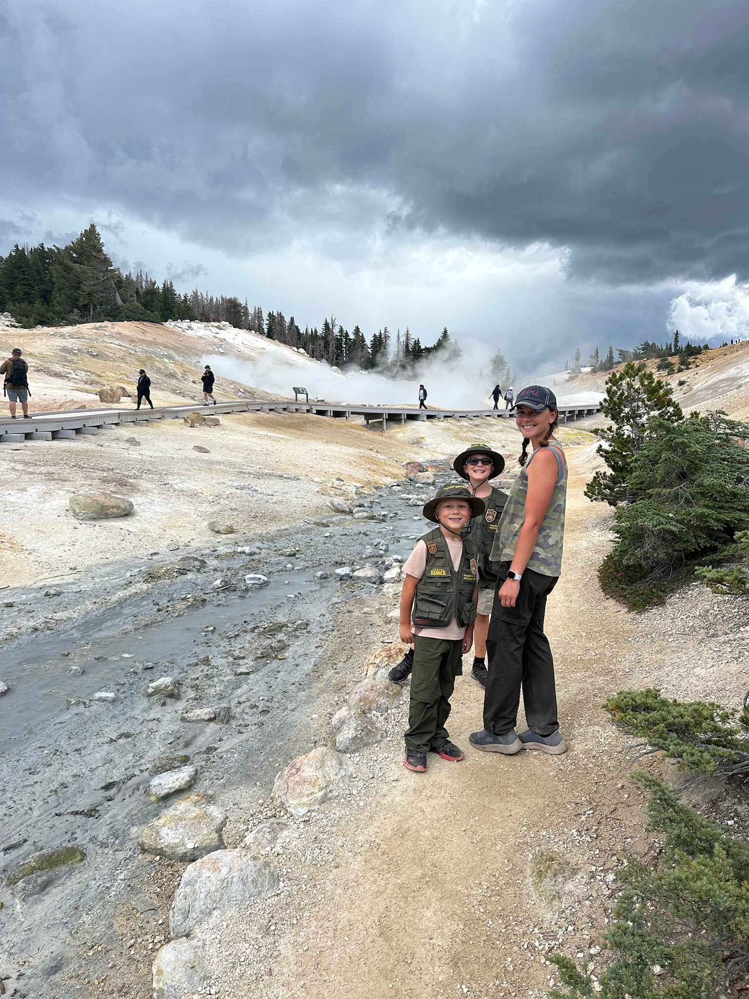 Day two in the Lassen Forest, we ventured into the Lassen Volcanic National Park, which was only a 15-minute drive from our camp. We had no idea what to explore here so we stopped at the visitor center and got a map and talked to the staff about recommendations on what to hike. We knew we wanted to see the geothermal activity I had read about online so we got the name of that hike, Bumpass Hell. The staff member also gave us some general information about where most tourists liked to explore, but the park was really so huge with a lot of options so it was hard to recommend specific hikes. The boys are also Junior Rangers, so we made sure to get them the booklets so they could complete their tasks during our visit and earn a badge.