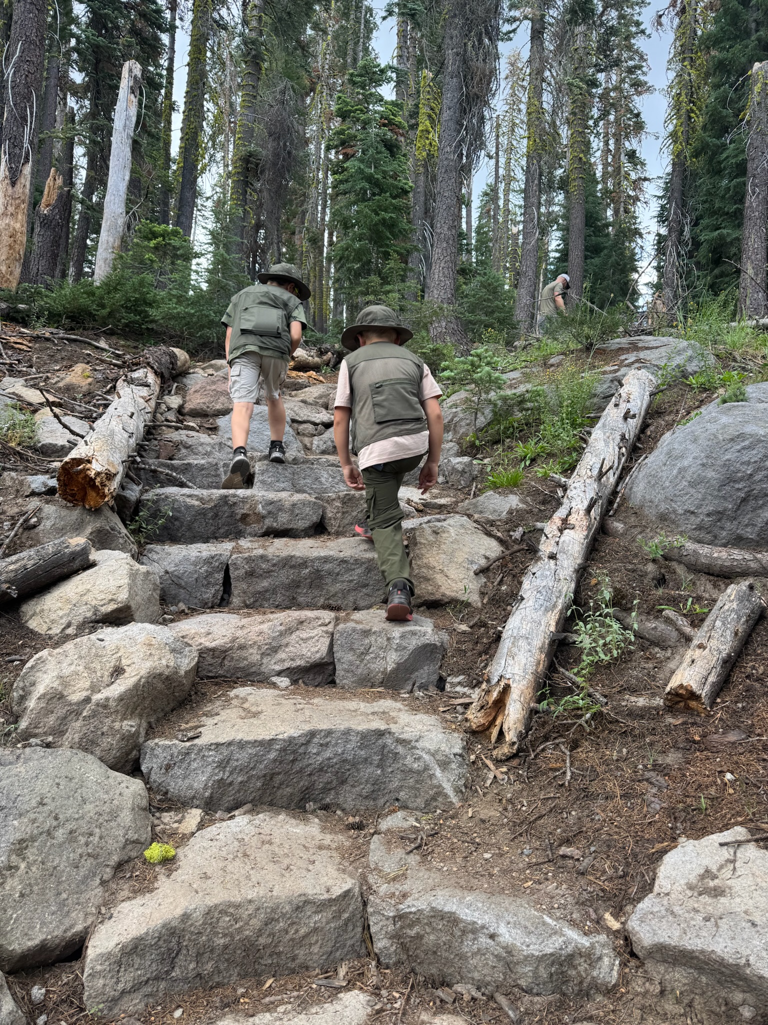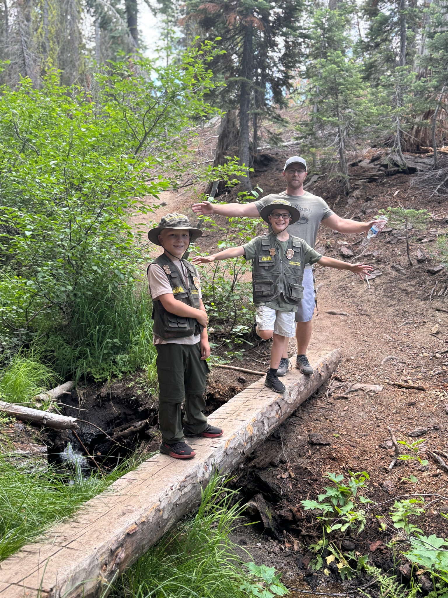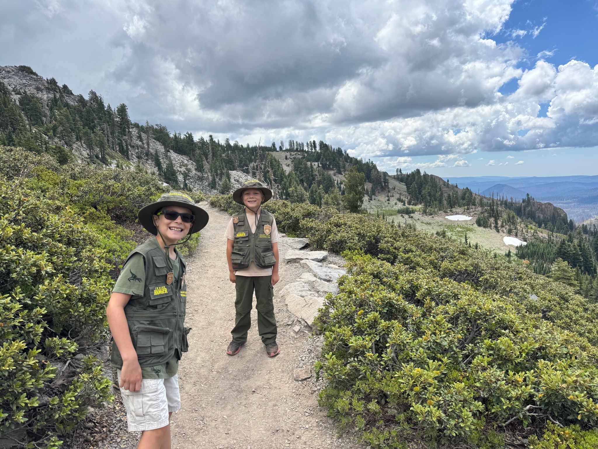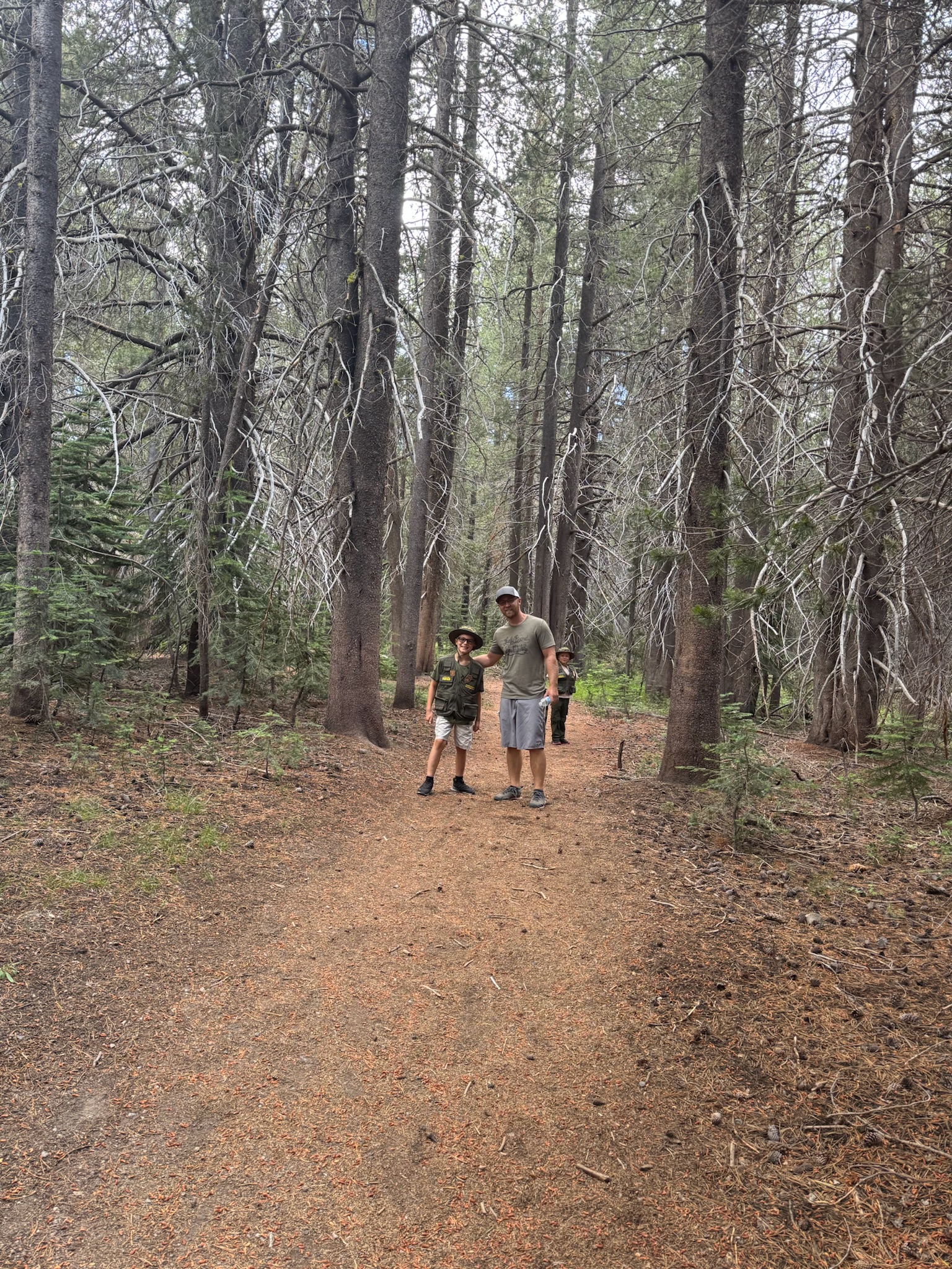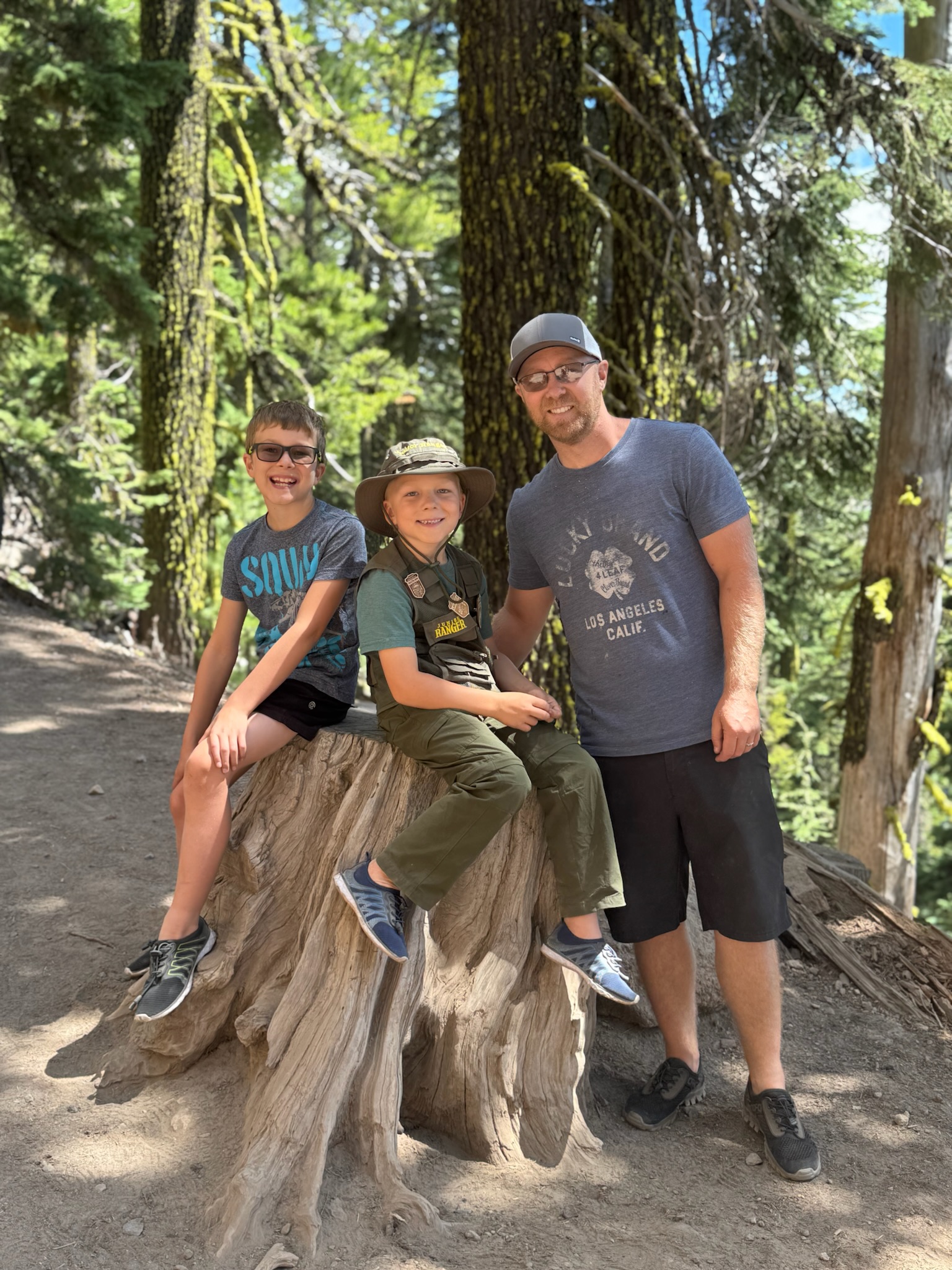 Day two in the Lassen Forest, we ventured into the Lassen Volcanic National Park, which was only a 15-minute drive from our camp. We had no idea what to explore here so we stopped at the visitor center and got a map and talked to the staff about recommendations on what to hike. We knew we wanted to see the geothermal activity I had read about online so we got the name of that hike, Bumpass Hell. The staff member also gave us some general information about where most tourists liked to explore, but the park was really so huge with a lot of options so it was hard to recommend specific hikes. The boys are also Junior Rangers, so we made sure to get them the booklets so they could complete their tasks during our visit and earn a badge.