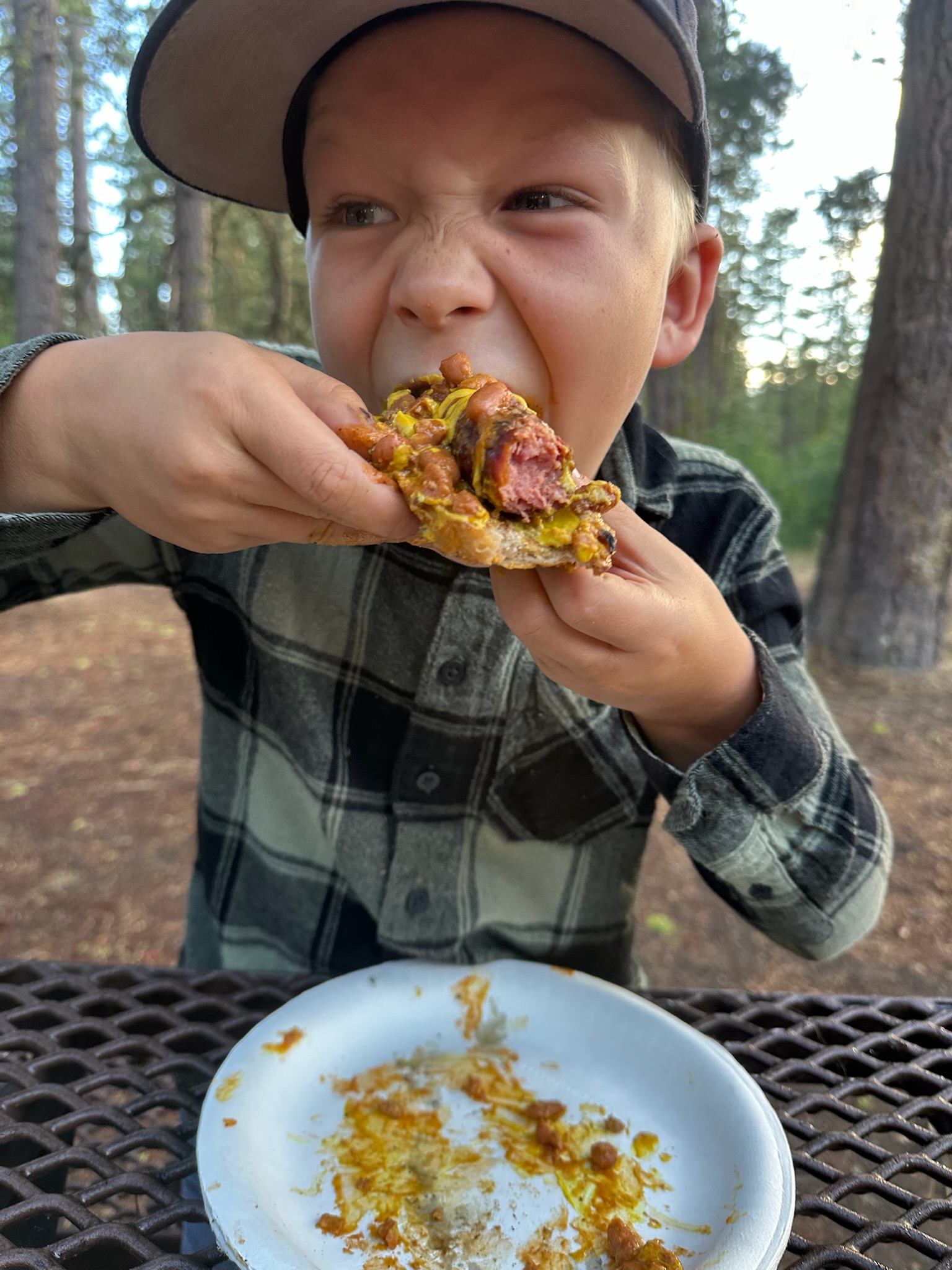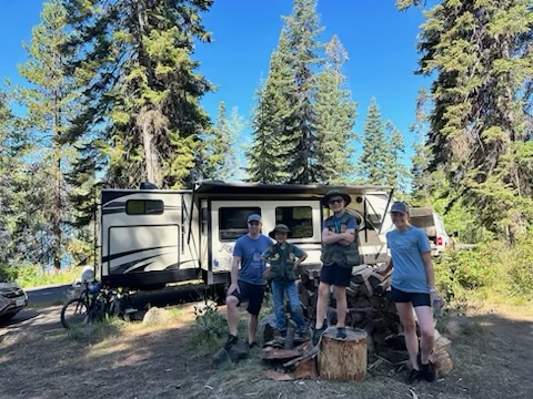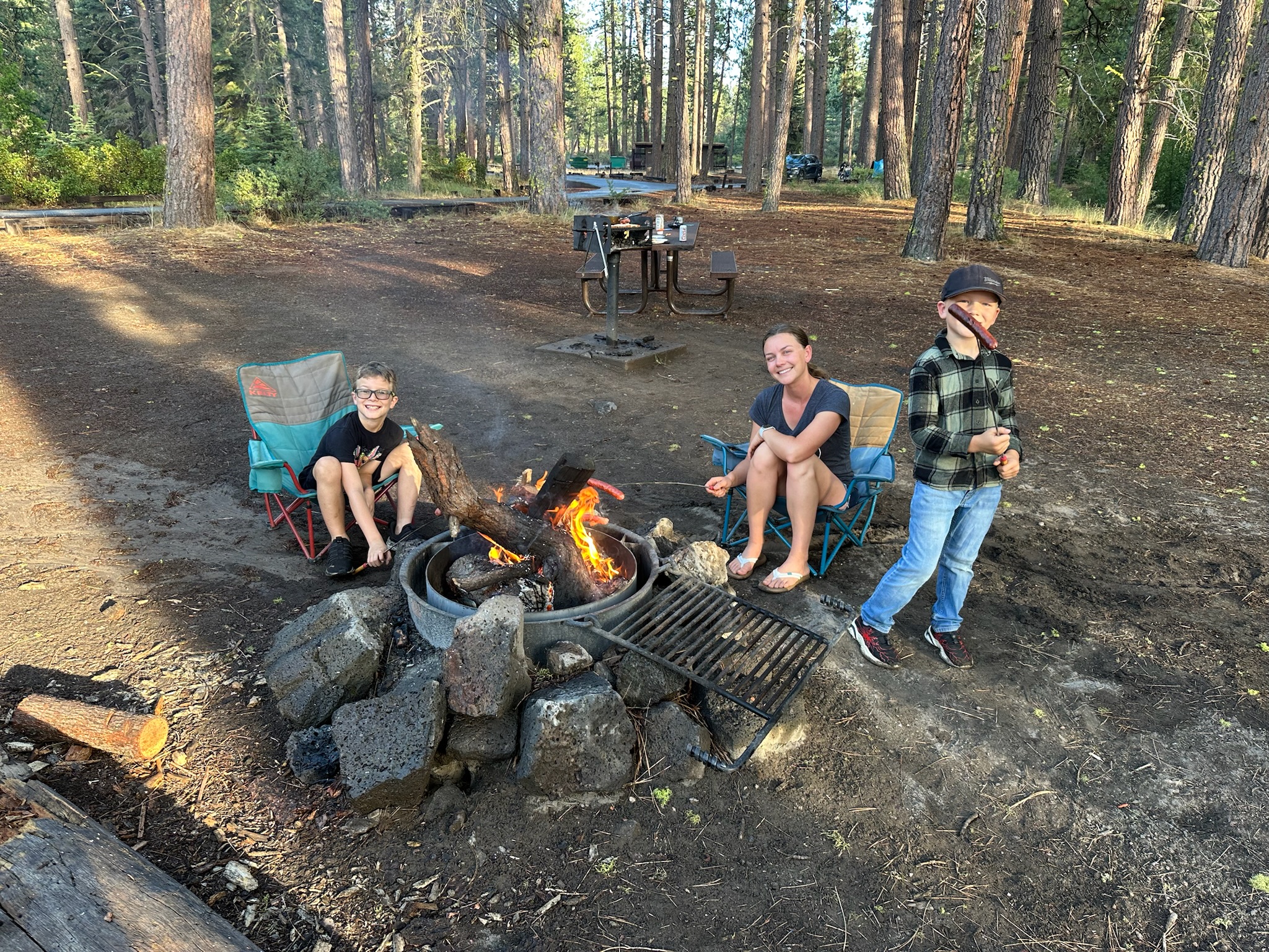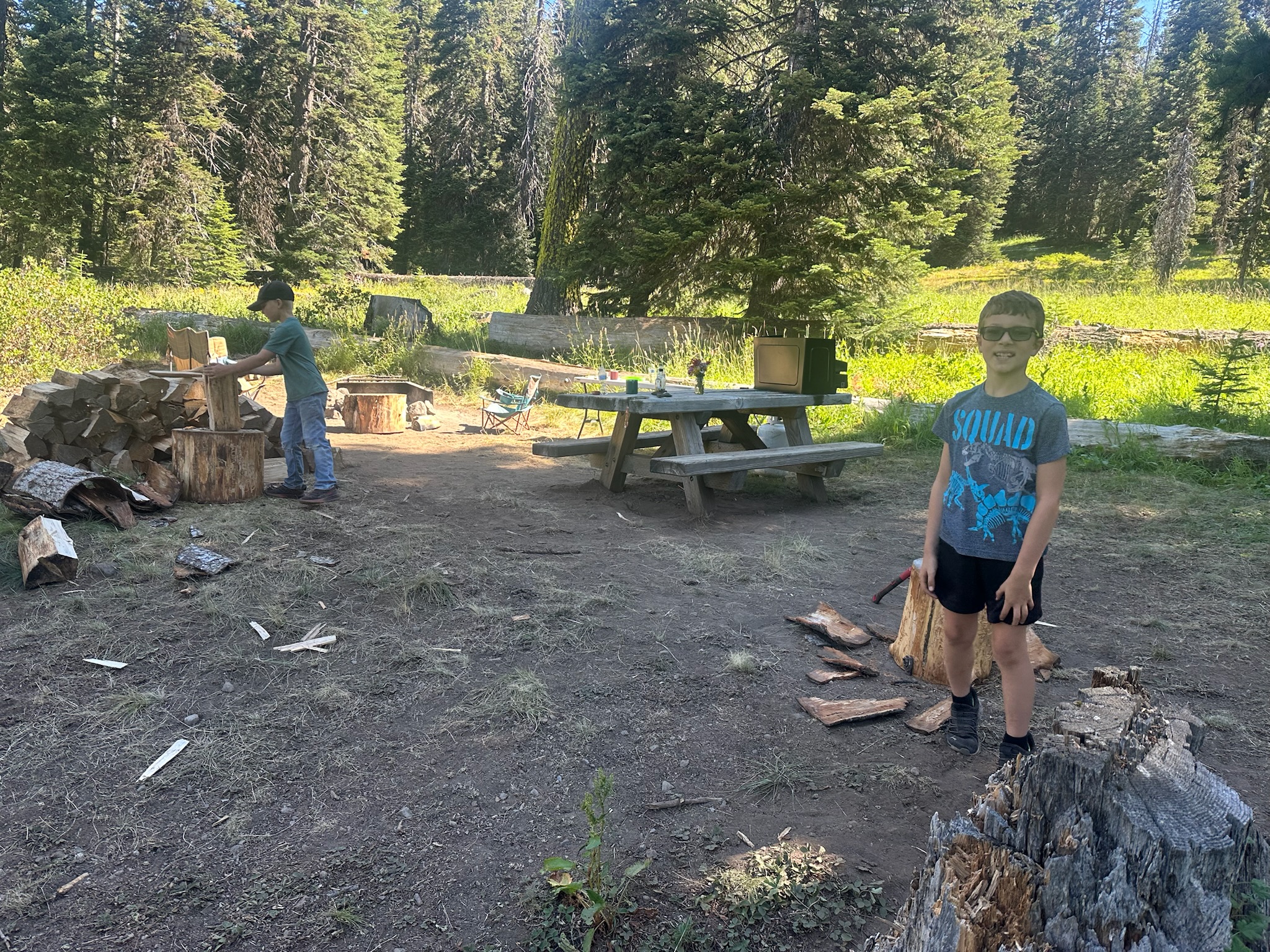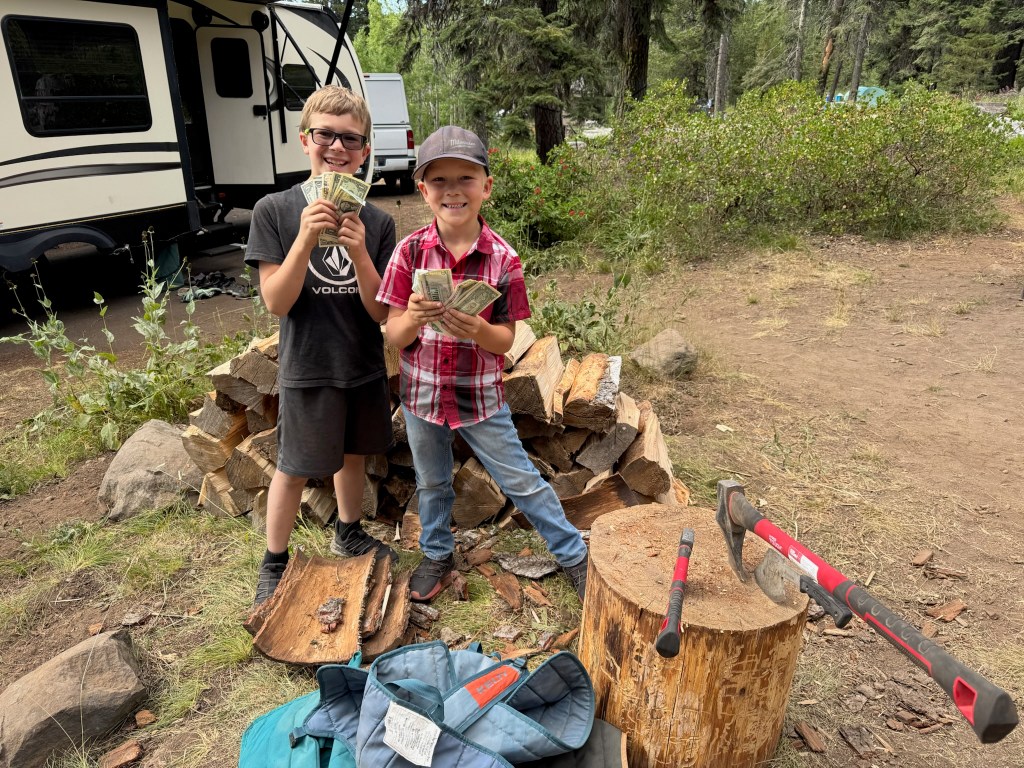 On our last evening back at camp, we had A TON of firewood. Let’s just say all the boys were excited to use the new axe and went a little overboard with chopping wood. So, we told the kids they could go around to the other campers that were here and see if anyone wanted any. So, Dustin took a nap, and the kids, Serenity, and I all carried some bundles of wood and walked around to the other campsites offering firewood and accepting donations. Some people didn’t want any, some paid $5 and some even paid $10. The boys only asked for donations and knew it was possible to receive nothing in return. We were just happy to disperse most of the wood. After about an hour, the kids were so excited to tell Daddy that they made $49 selling the wood! I kept $1 as a Mom tax fee for carrying the wood so that they could split the profits evenly. They surprised us all when they came out and handed Serenity $4 ($2 from each of them) for walking around with them and helping to carry the wood. They must’ve really enjoyed having her company! They became little entrepreneurs at Diamond Lake Campground and it’s definitely something they will remember for a while.
