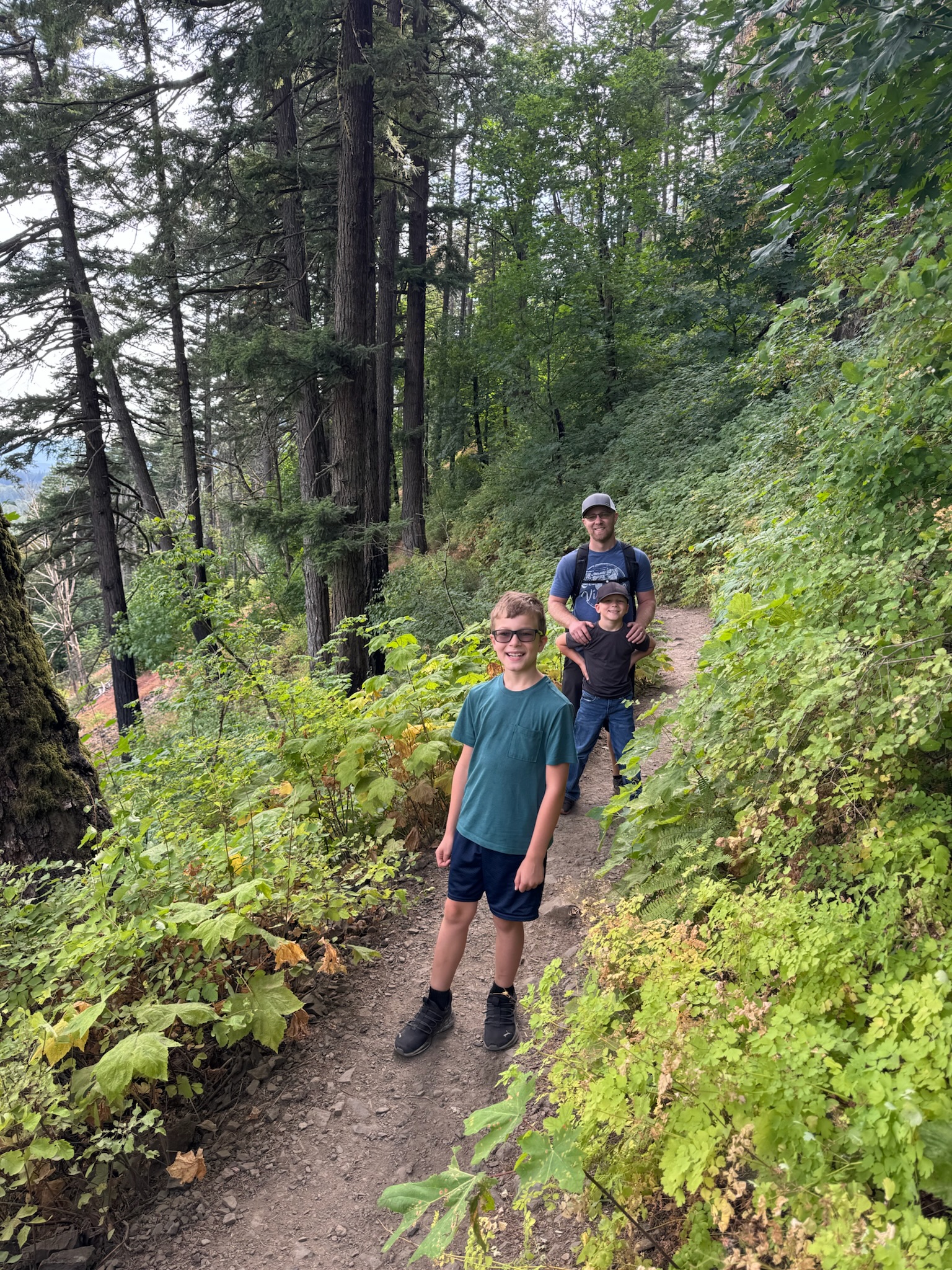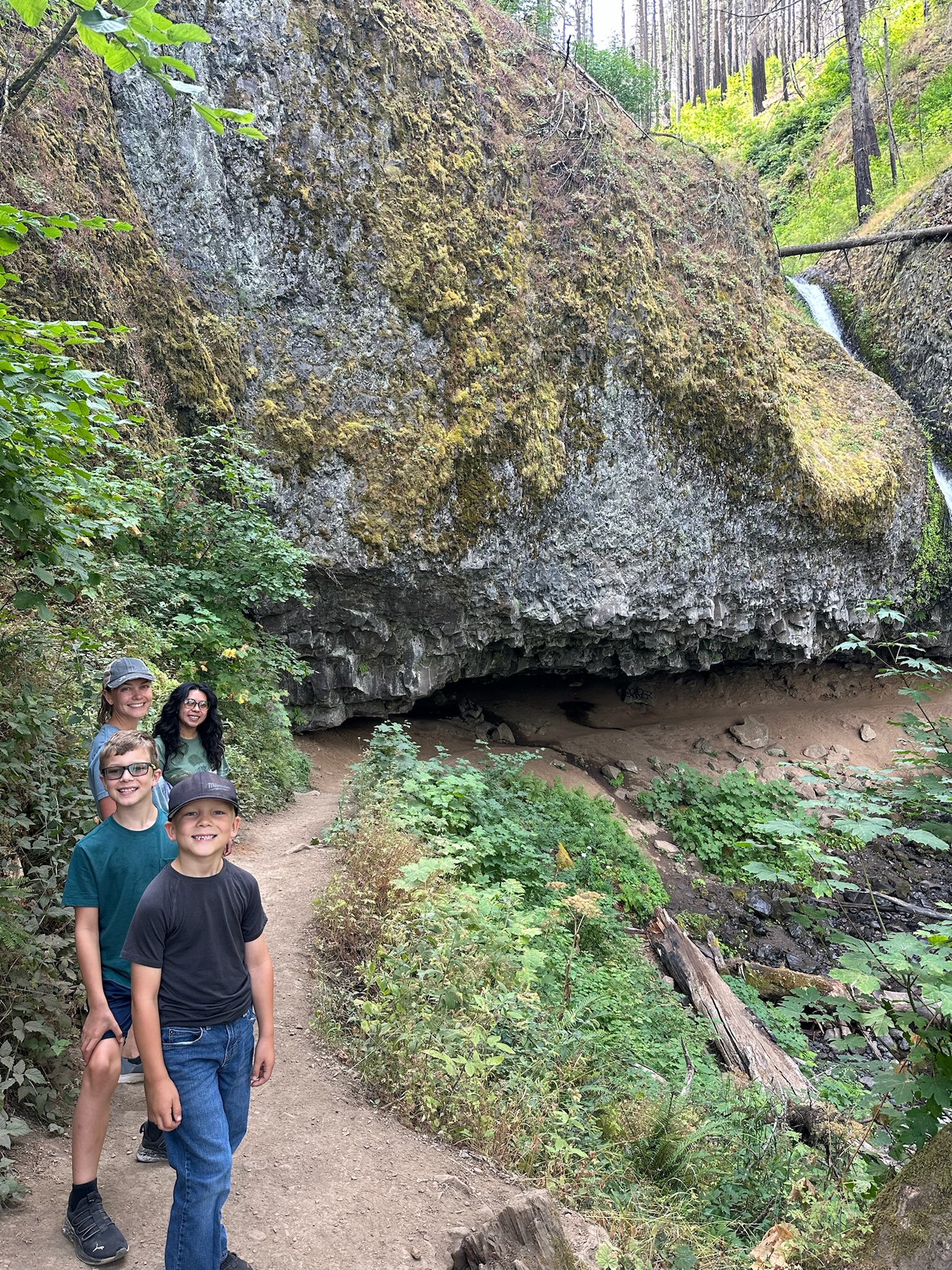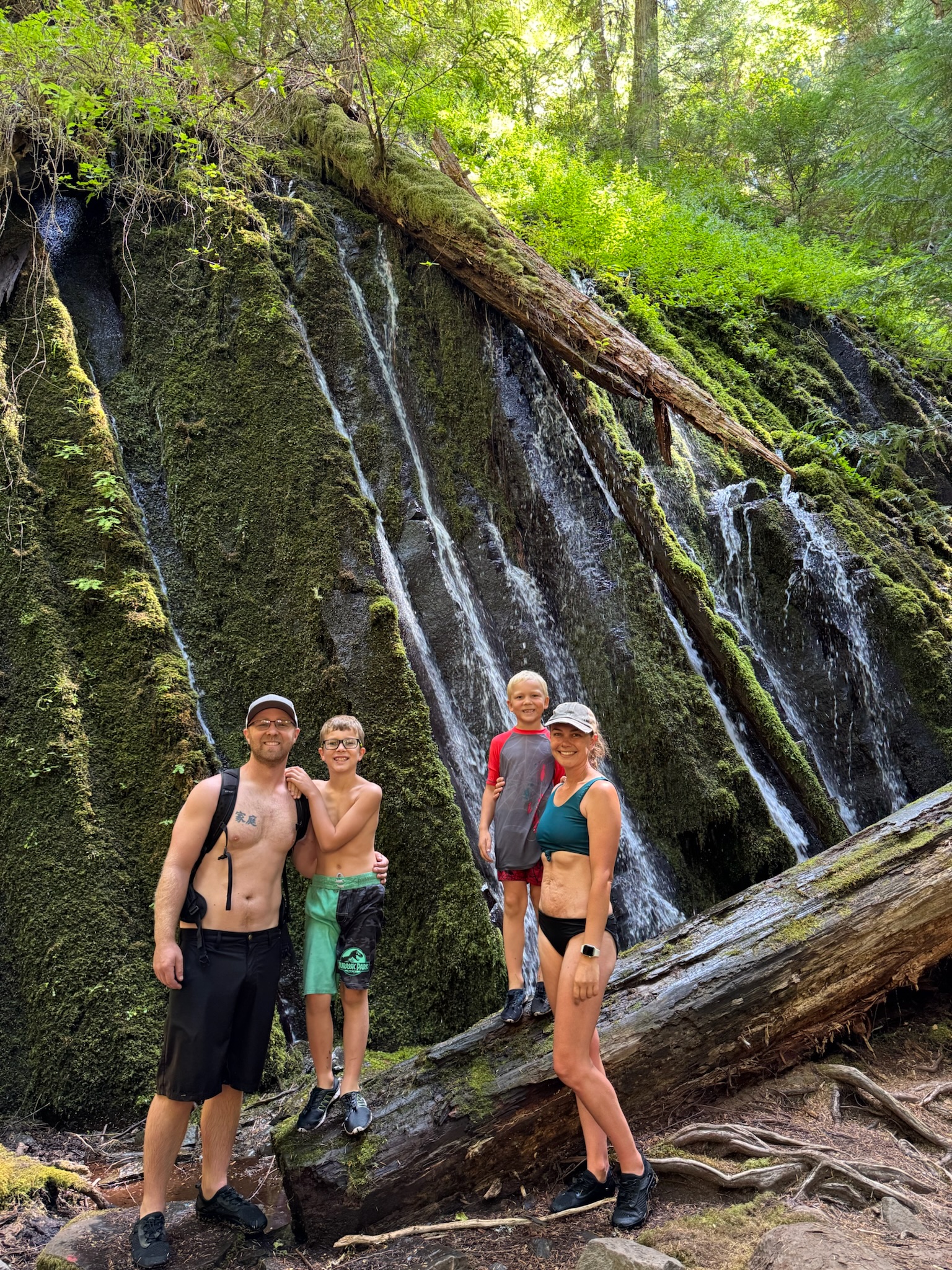 The next day, we decided to tour the famous Multnomah County waterfalls, just an hour away from our camp. We invited Alex and her family but understood they had a two-month-old and going on long hikes wasn’t ideal. We were, however, joined by Serenity, another friend that had been staying with Alex for a while and opted to join us on our hike. We decided against going to the famous Multnomah Falls, knowing it would be packed with other tourists, and also knowing you needed a parking permit in advance to go there. Plus, we could see it from the road and it looked just as it did in the many pictures and post cards I’m sure most people have seen with the waterfall behind the arching bridge. We didn’t feel we missed anything big by not going there.