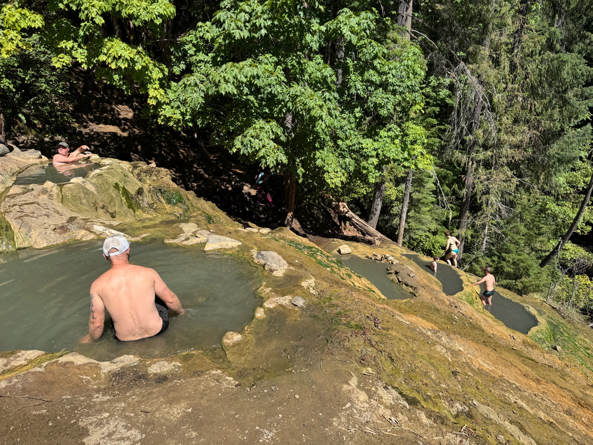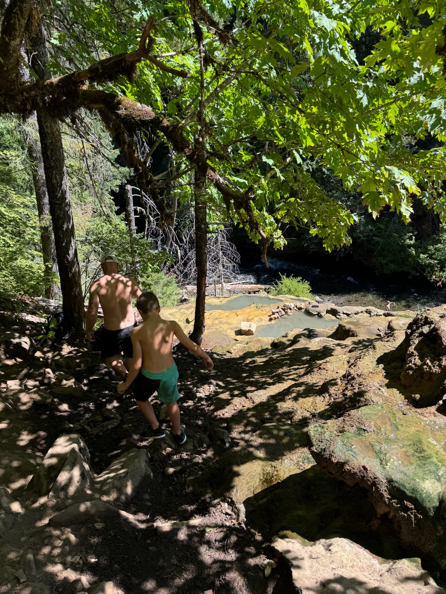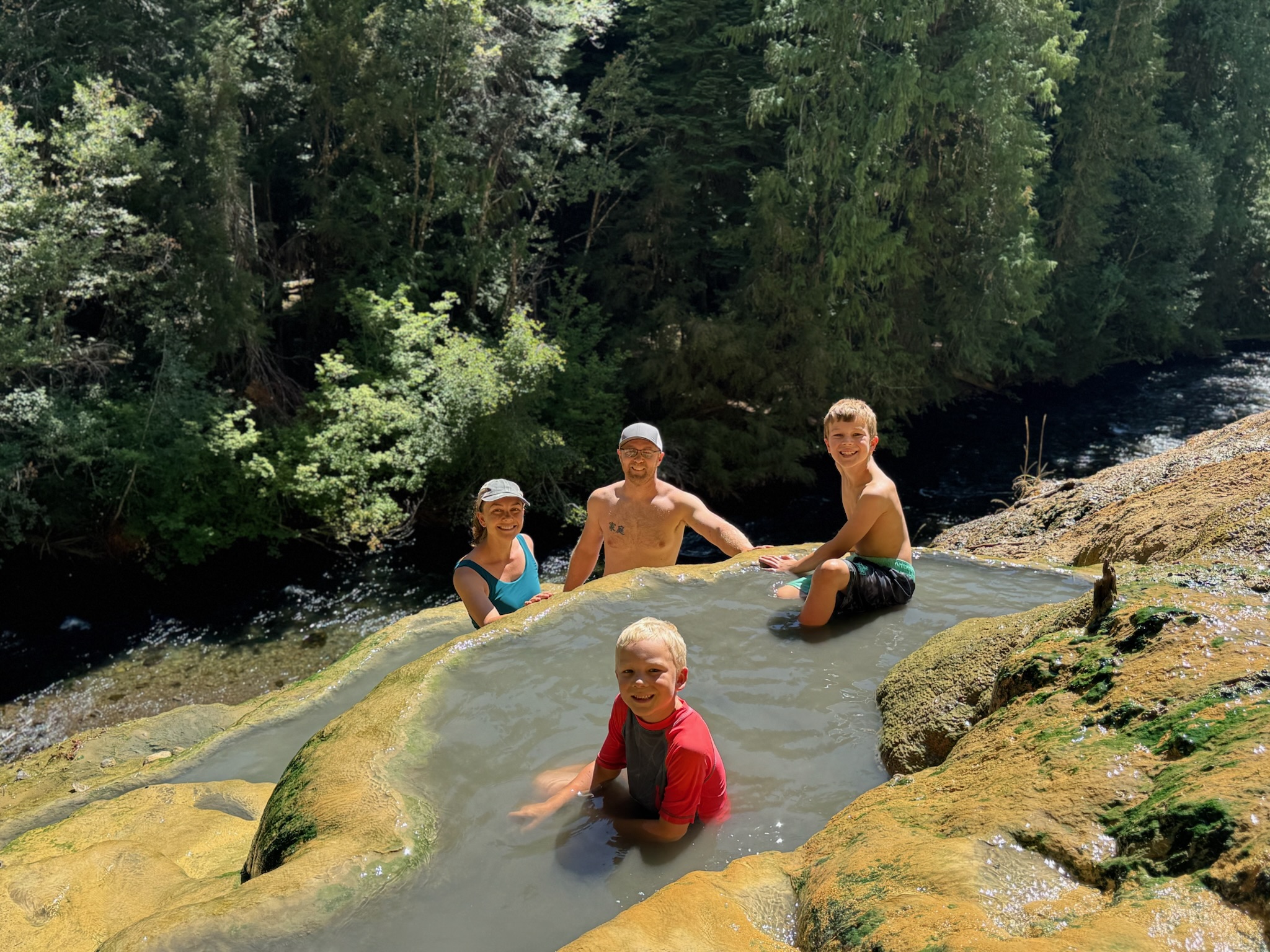 The next day, we drove into the Umpqua National Forest to the Natural Hot Springs. It was a fun, short little trail that led to these really neat little pools of natural hot springs. There were a few other people in the pools when we got there but it wasn’t overly crowded (yet). It felt so weird to be in the middle of the forest climbing into what felt like a hot tub! The water felt nice and warm, but they were not at all clean feeling. The water was murky and muddy and the kids weren’t too crazy about that.