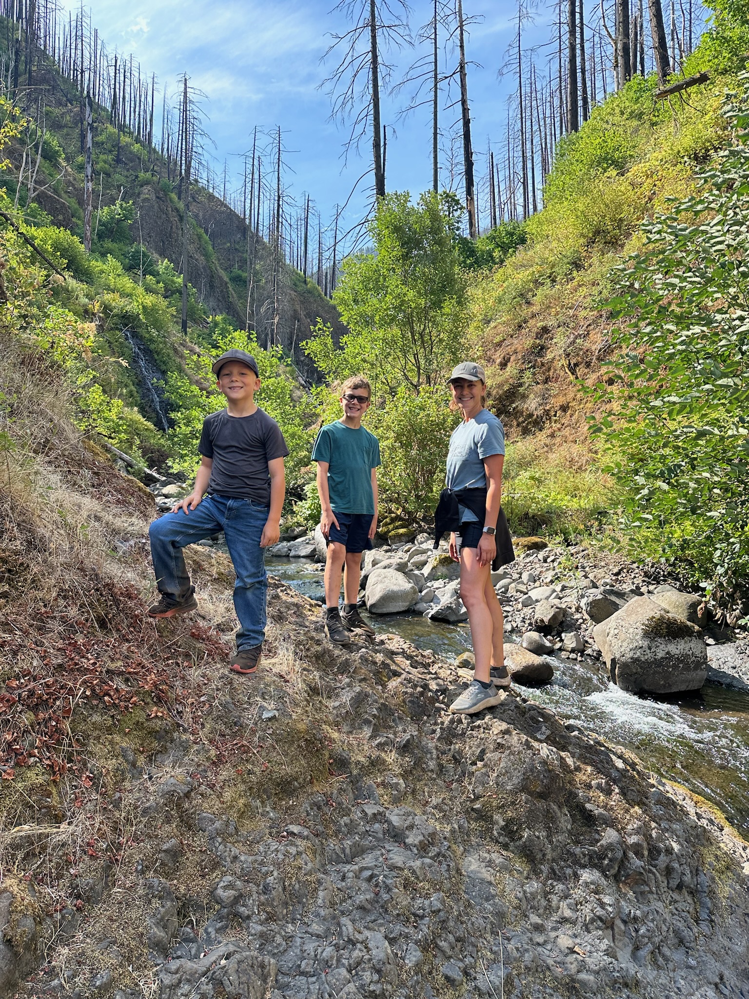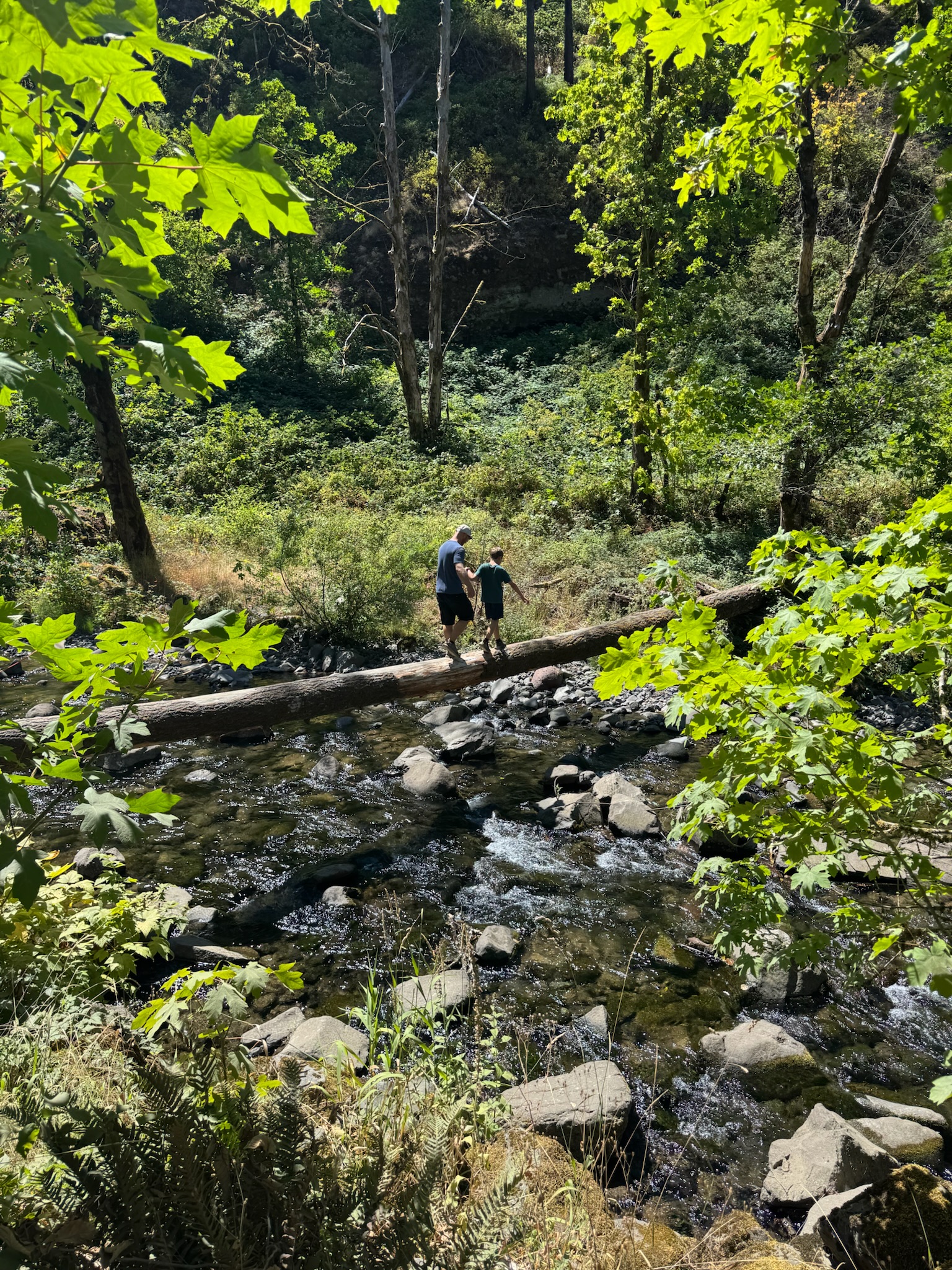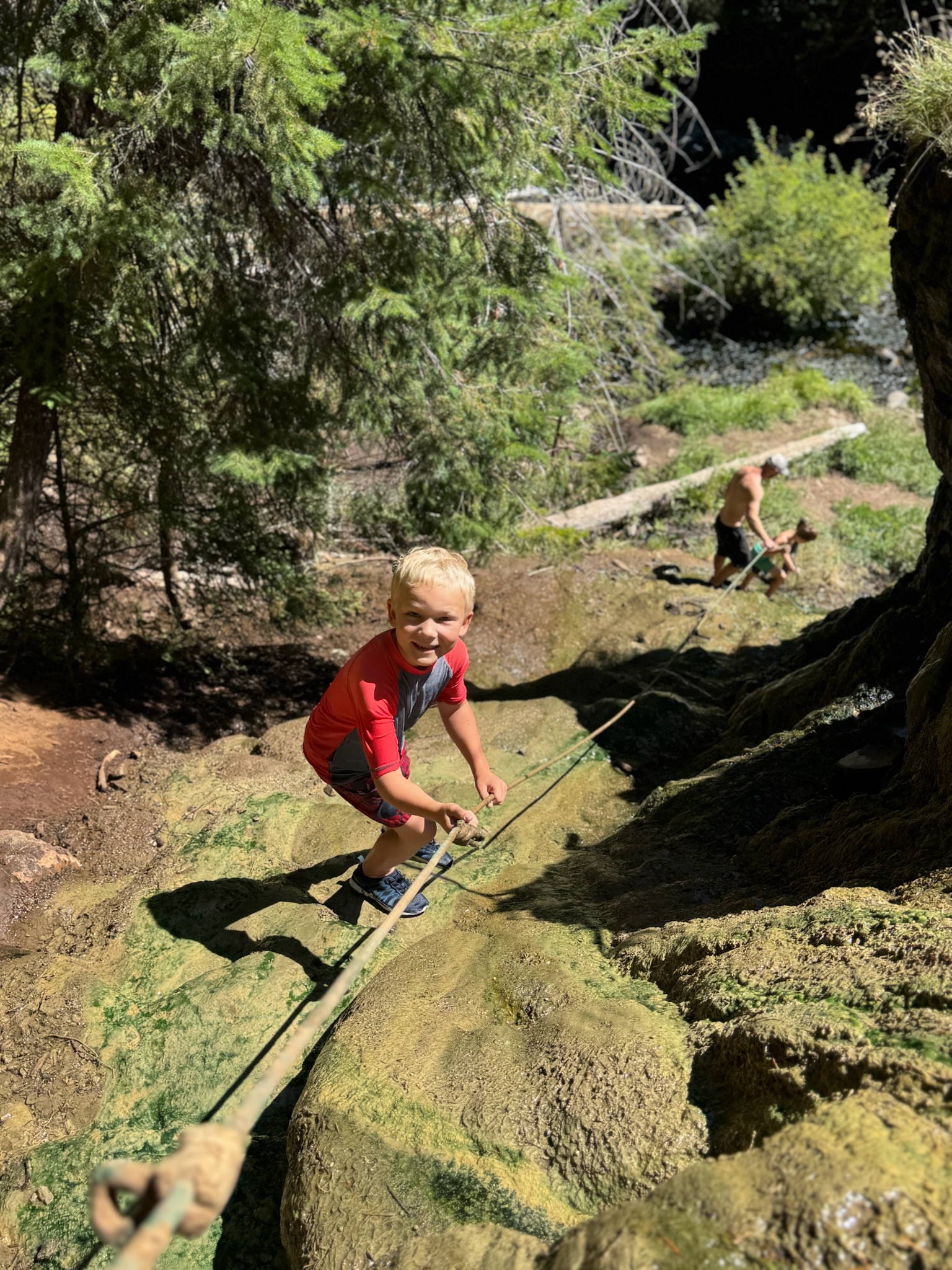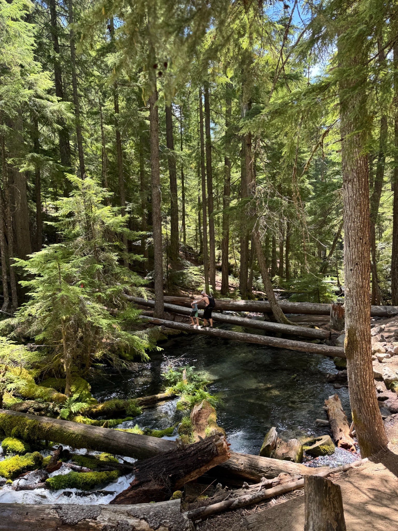The next day, we drove into the Umpqua National Forest to the Natural Hot Springs. It was a fun, short little trail that led to these really neat little pools of natural hot springs. There were a few other people in the pools when we got there but it wasn’t overly crowded (yet). It felt so weird to be in the middle of the forest climbing into what felt like a hot tub! The water felt nice and warm, but they were not at all clean feeling. The water was murky and muddy and the kids weren’t too crazy about that.