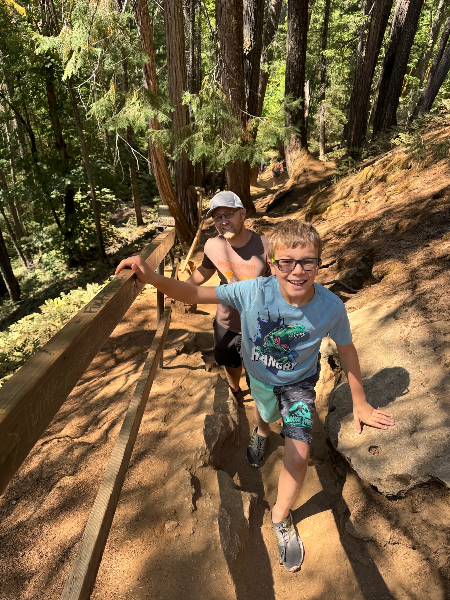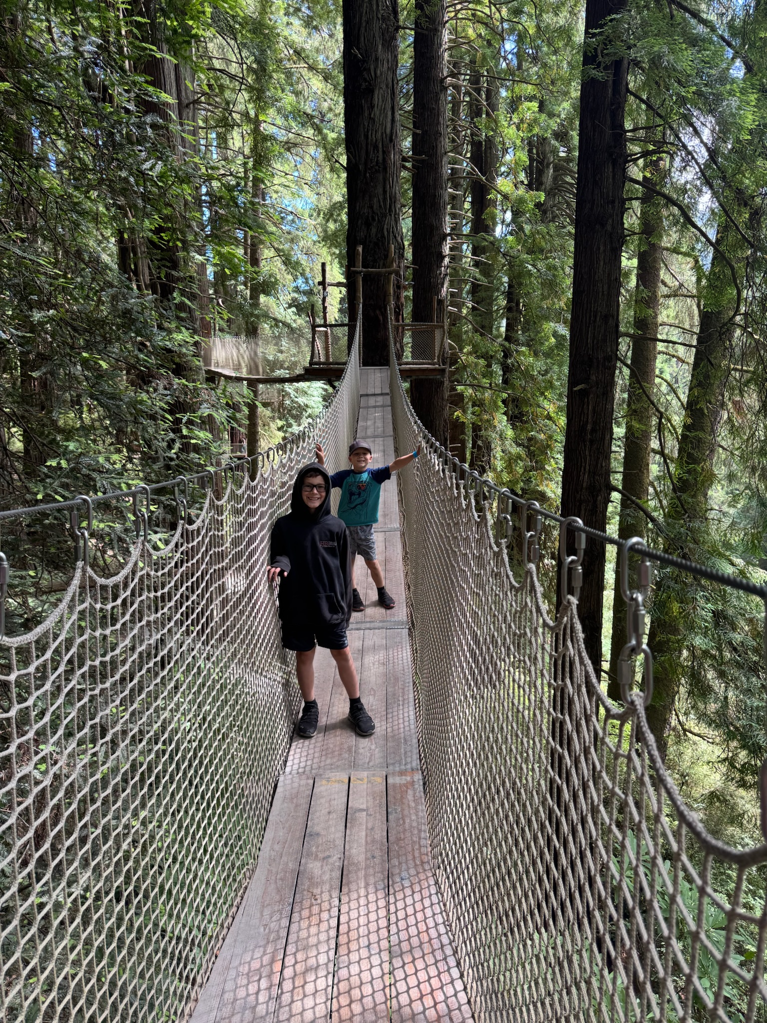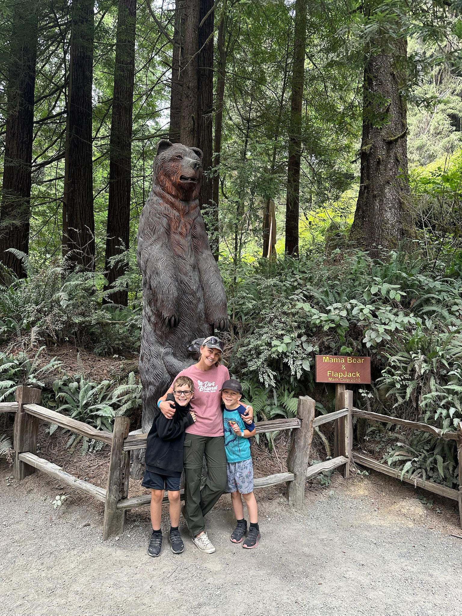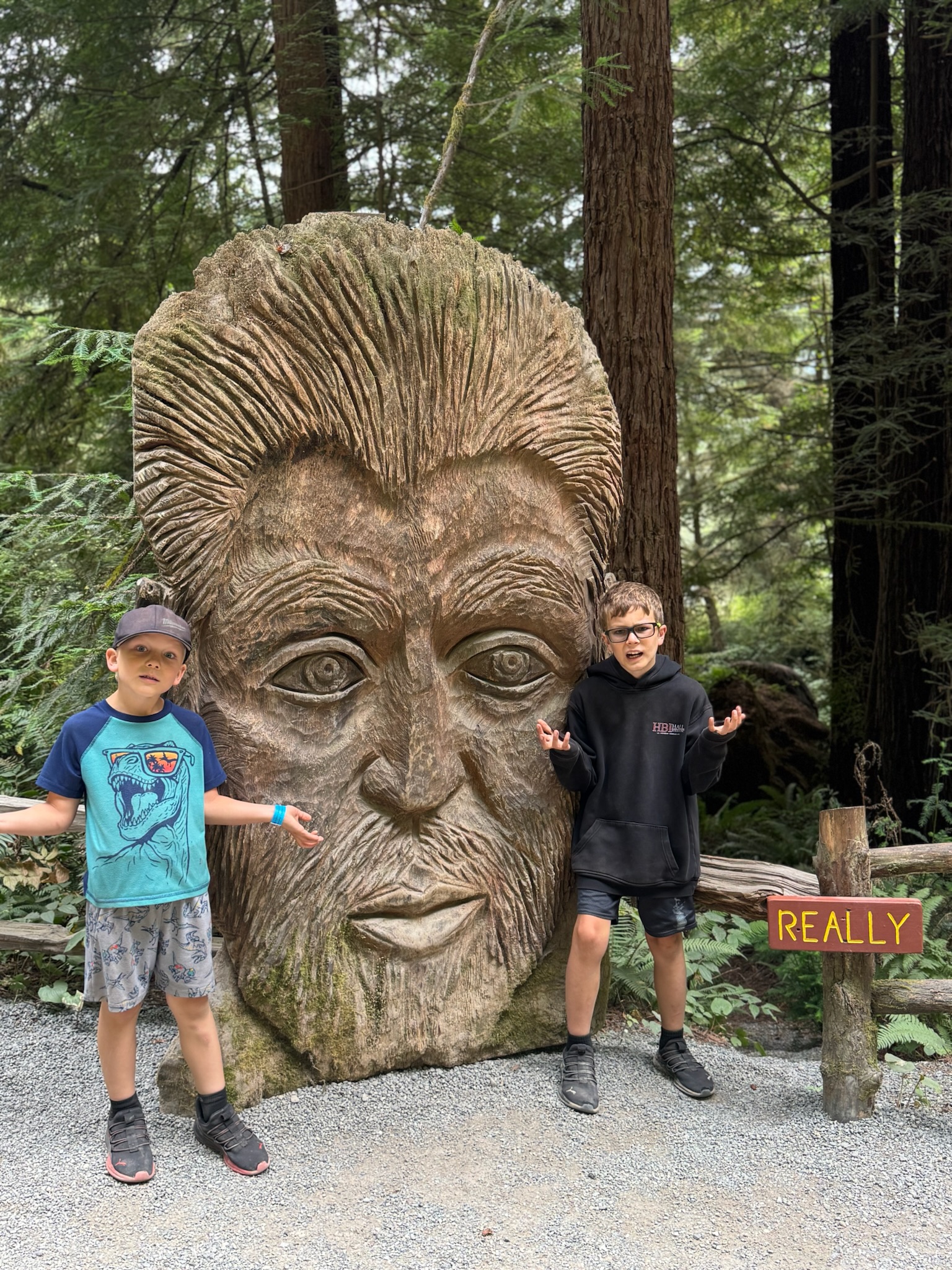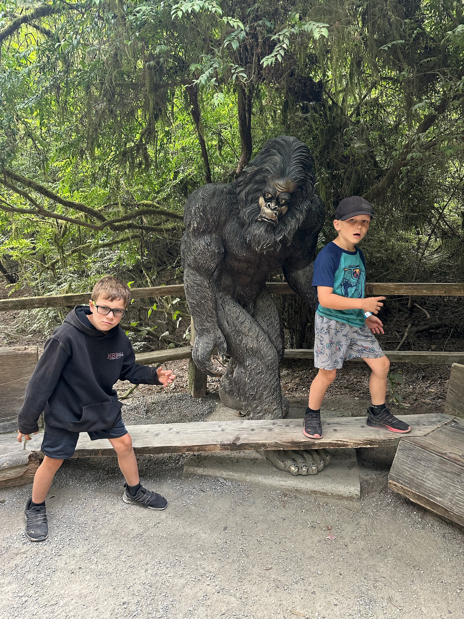 Serenity left the next morning and it was time for us too to head back to our home state and leave the beautiful state of Oregon. Our next campsite was a little over 4 hours away. We decided to make a stop just a little before our camp at the Trees of Mystery in Klamath, California. It was definitely our more expensive adventure of the trip, being almost $100 for admission for all of us, but it was one of the kids most favorite parts and hard to pass up when we were right there in the area. The path was well maintained and had so many wood carved creatures and interesting looking trees. The coolest part was the Canopy trail where you actually got to walk on suspended bridges 50-100 feet high in the trees. We also rode the gondola on the Skytrail which was cool because the kids had never been in a gondola before. Just the site of the trees that were hundreds, maybe even thousands of years old, was just amazing and humbling to be in their presence. It was well worth the stop.