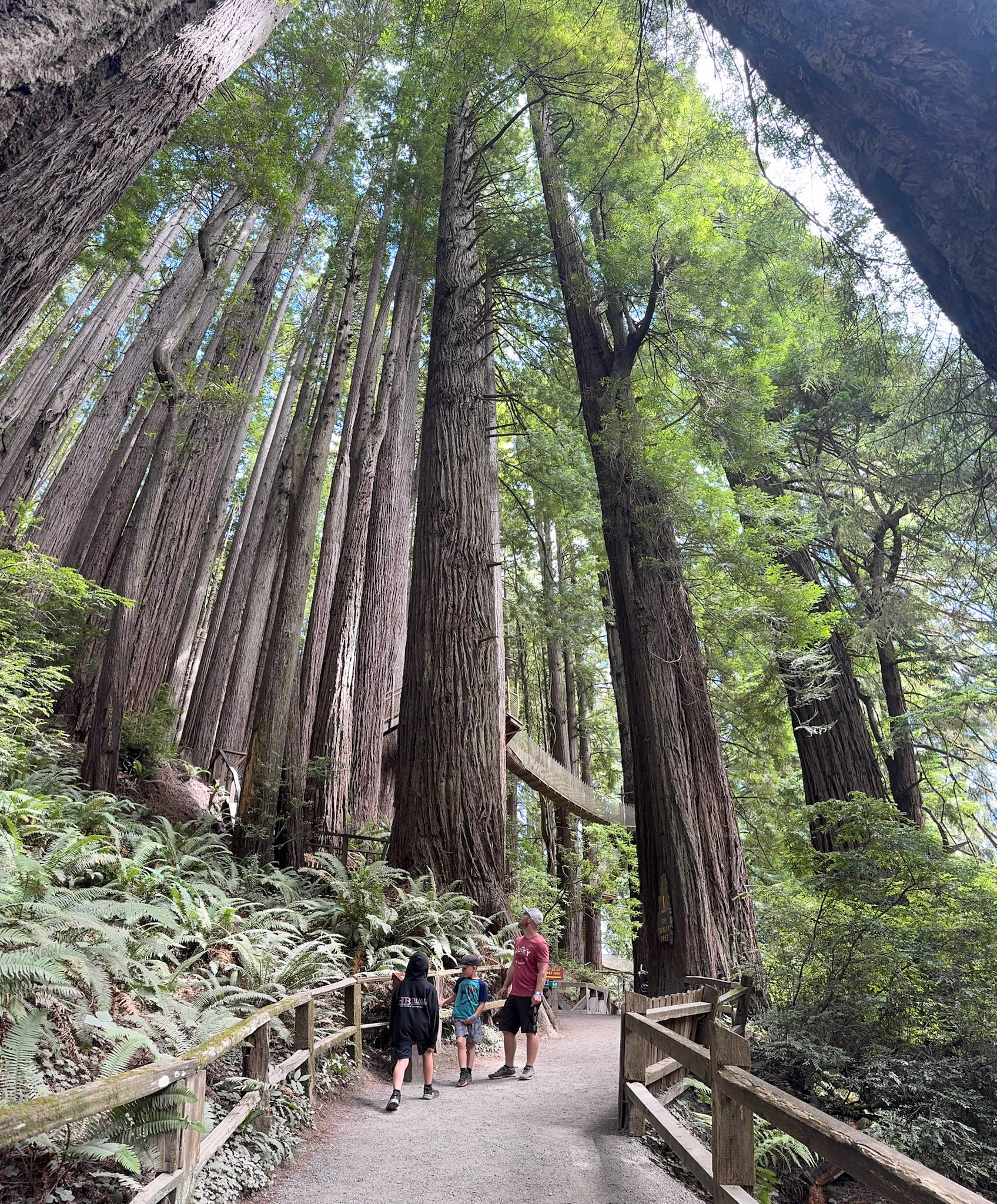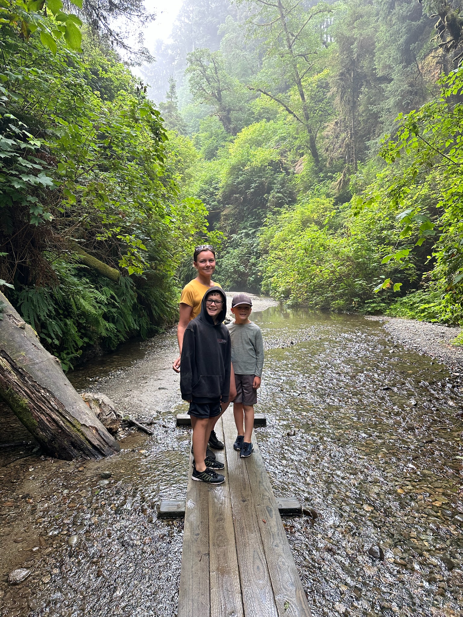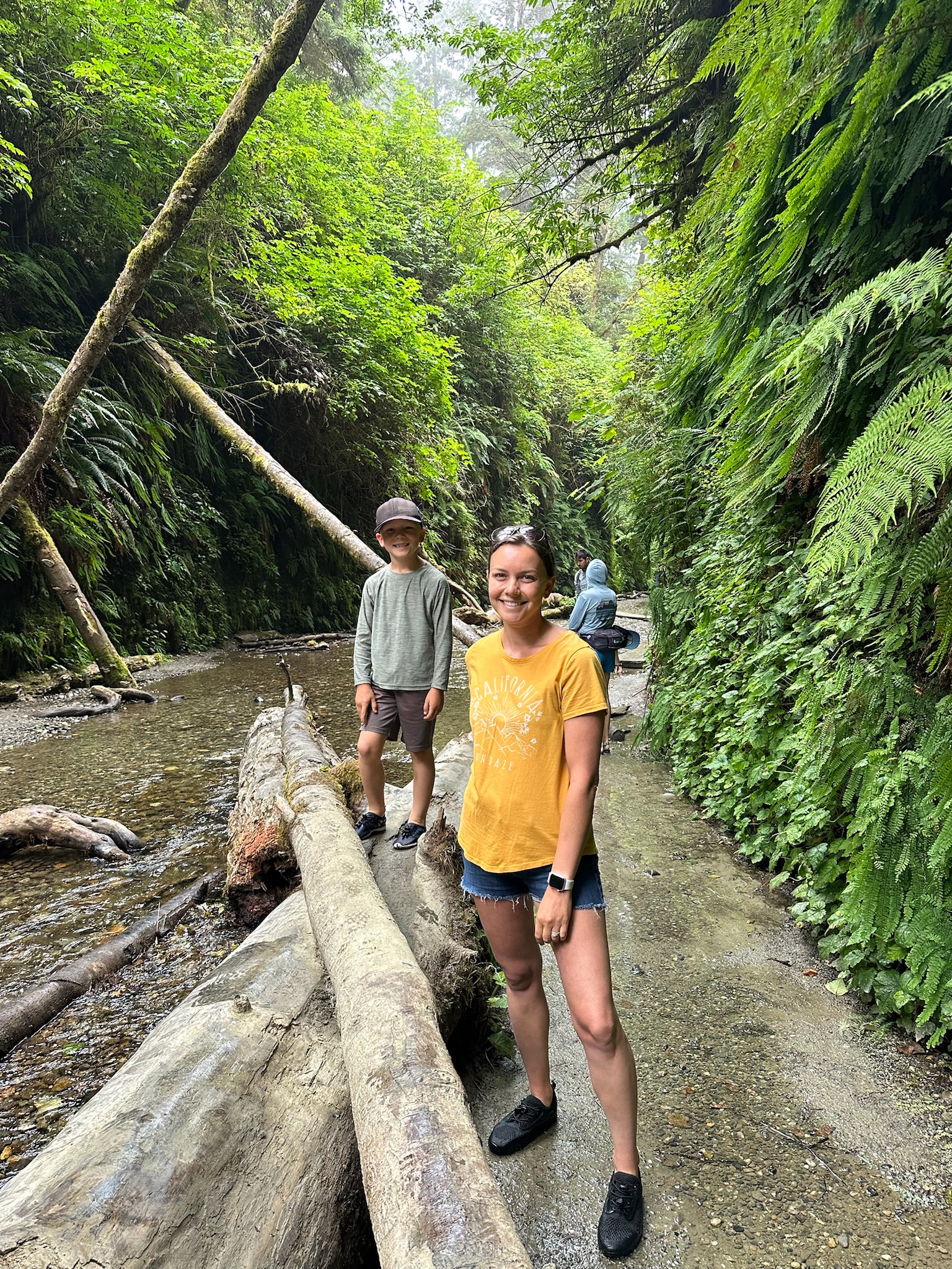 Our last big adventure of the trip was one I was most excited about! When researching fun areas to explore, I came across Fern Canyon, a 1-mile loop trail with 50-foot walls covered in ferns and moss. The trail alone looked beautiful, but then I also read that it was a filming location for one of the Jurassic Park movies, which my kids love, so I was super excited to surprise them with that. Upon further research of the canyon, I learned that you needed a permit to access the trail and that the trail was often times wet, so I made sure to reserve the permit ahead of time and purchase us all water shoes to hike through the canyon with.