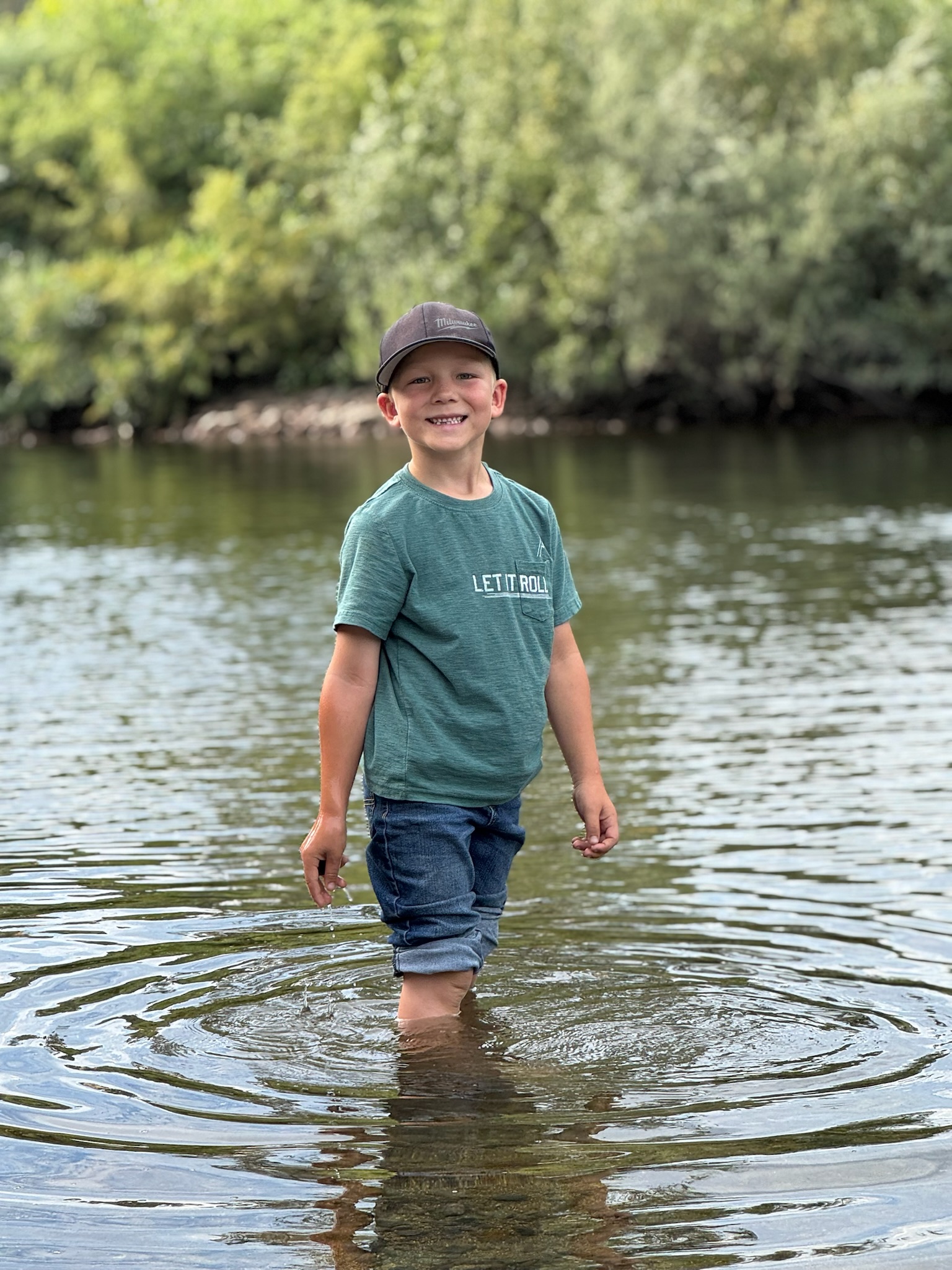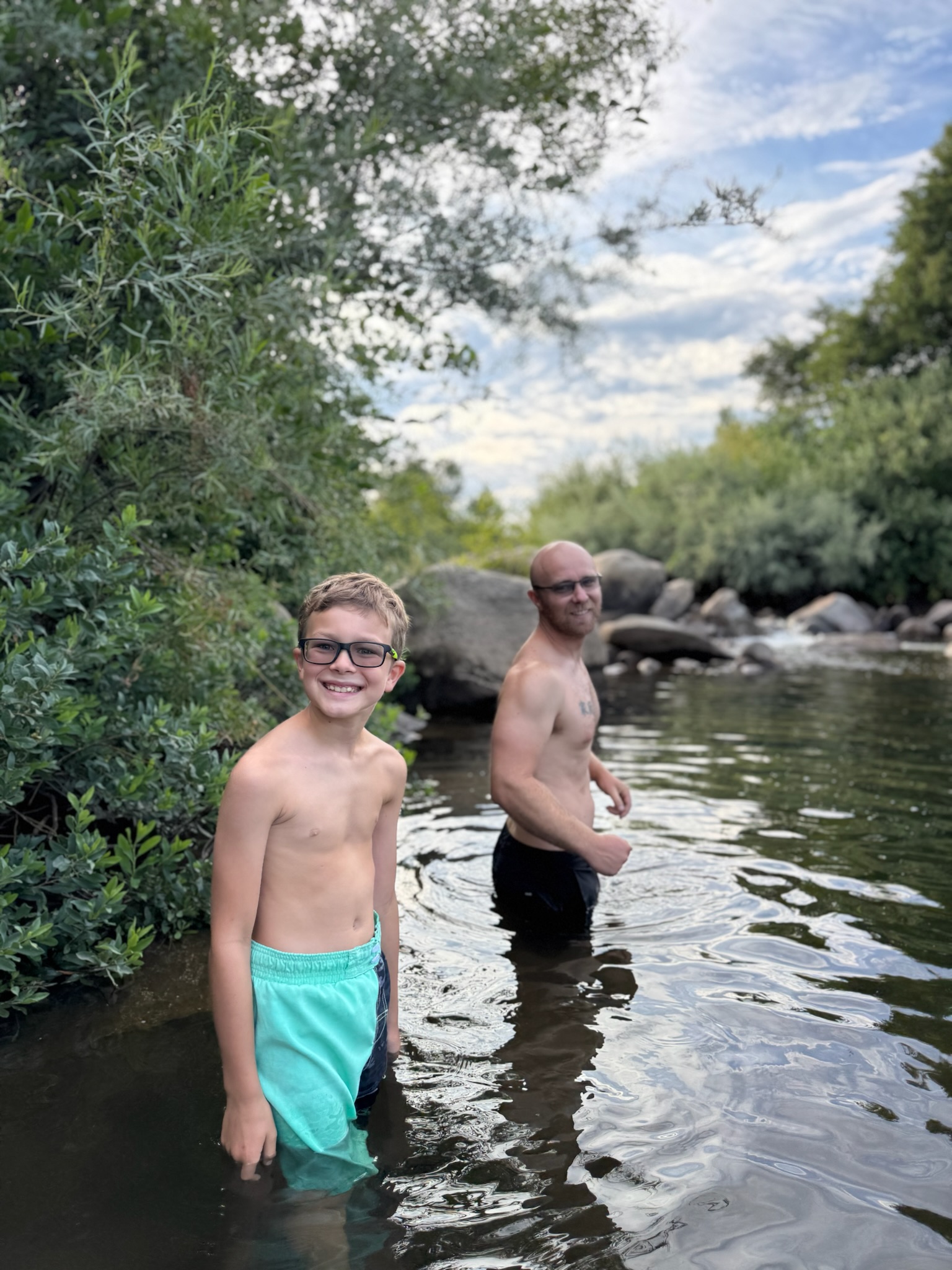 We drove over to the river on the campground and found where to drop our tubes in and start our float. The kids sat on our laps because we weren’t sure they could manage their own large tubes. The float was very slow and peaceful and there was no one else around. A dragonfly landed on my knee, and then onto Colten, who was on my lap. As a lover of bugs, Colten thought this was so neat. Jax, on the other hand, not so much the bug lover, drifted a far with Dustin, not wanting to be anywhere near that friendly dragonfly.