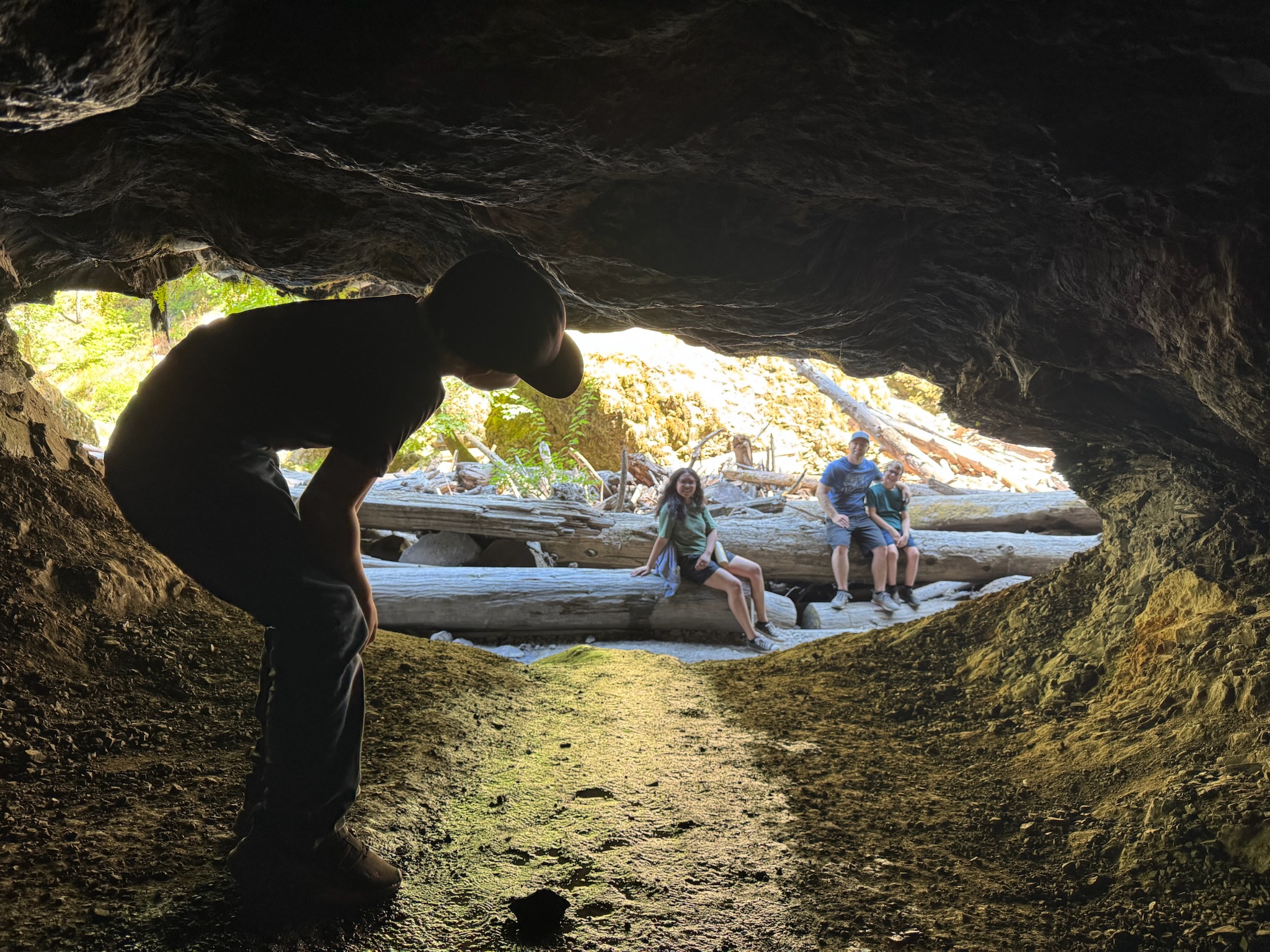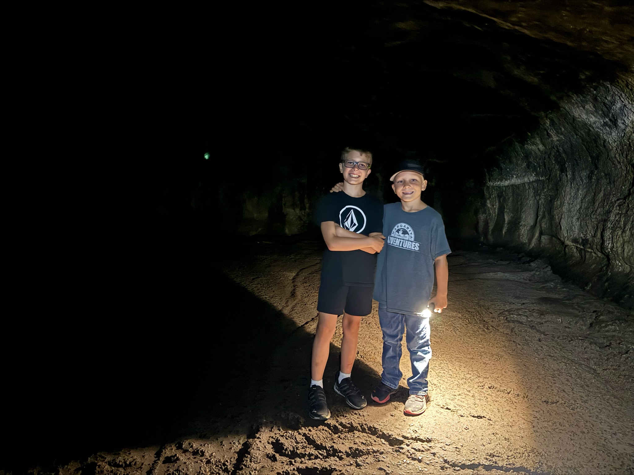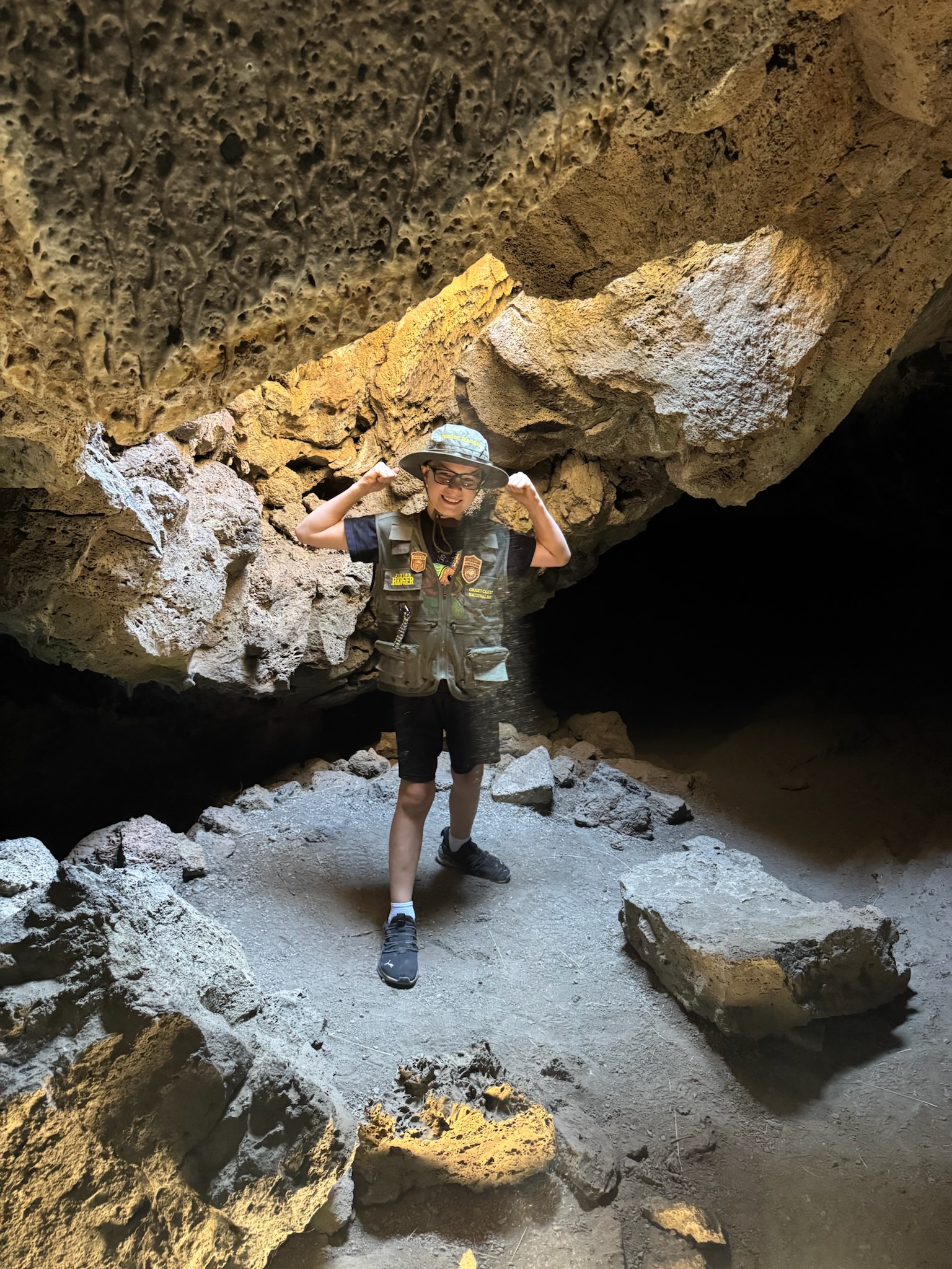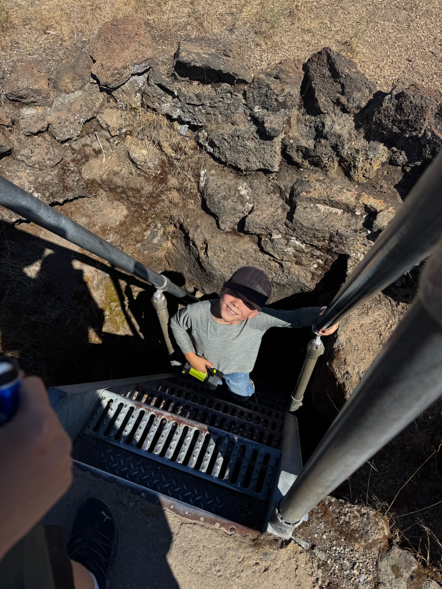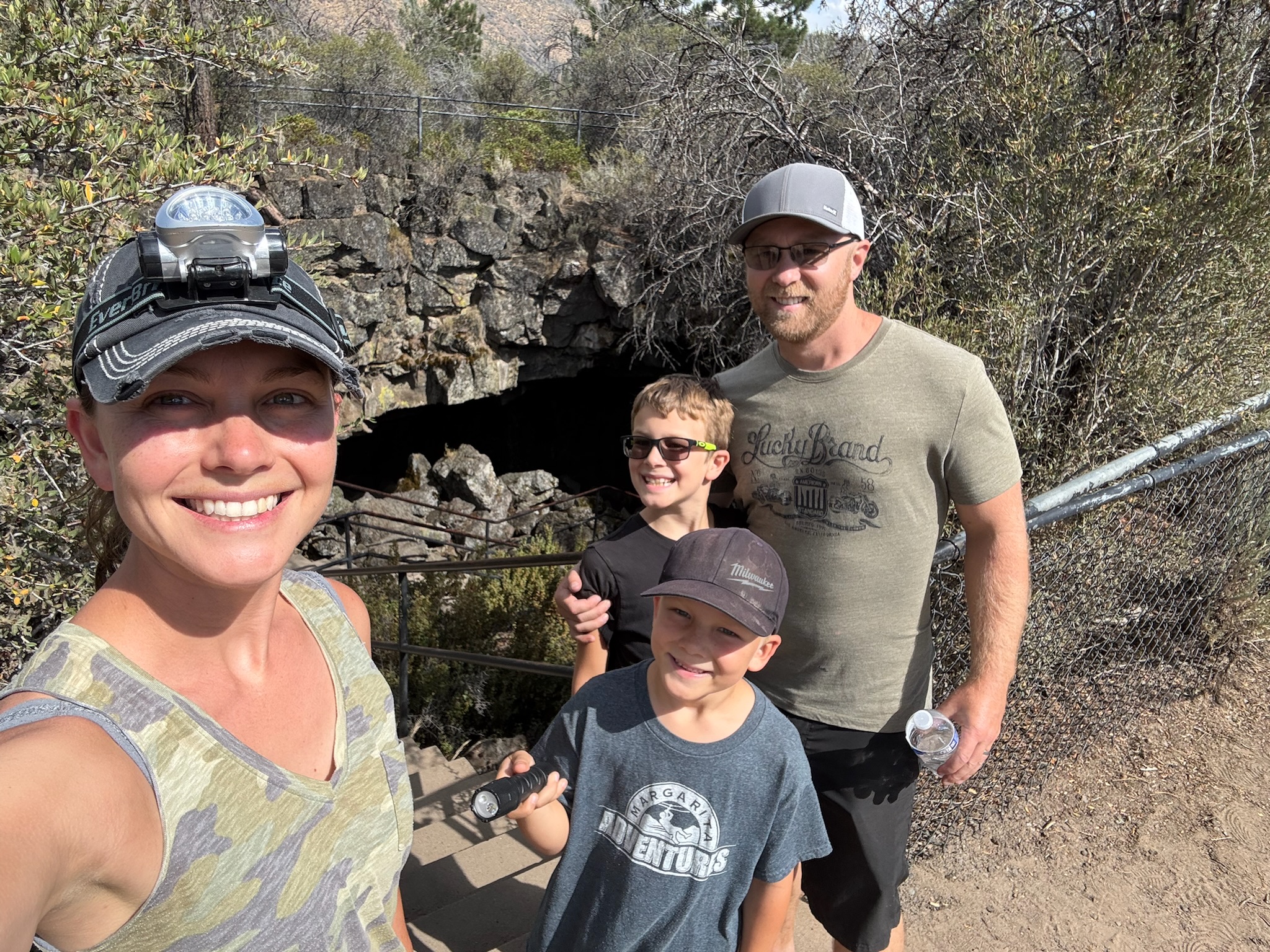 Being the planner that I am, I had called ahead and made sure this area was accessible with an RV and that we would be able to leave our trailer in the parking lot as we toured the caves. The lady on the phone was very pleasant and welcomed us in! We pulled in to the visitor center and detached our trailer in the parking lot. Evidently, they must see this a lot as the parking lot had multiple large spaces for RVs. We rented flash lights at no charge, picked up another couple Junior Ranger books, and got a pamphlet of all the different caves we could drive to and self-tour. It was very cool! The caves were categorized by how challenging they were and there was a total of 24 caves in a quick 3-mile loop drive that brings you right back to the visitor center. We chose a handful of caves at random to explore and walk through before finally feeling satisfied with our cave fix and headed back to the parking lot to pick up our trailer, get the boys their badges, and continue our drive to Bend, Oregon.
