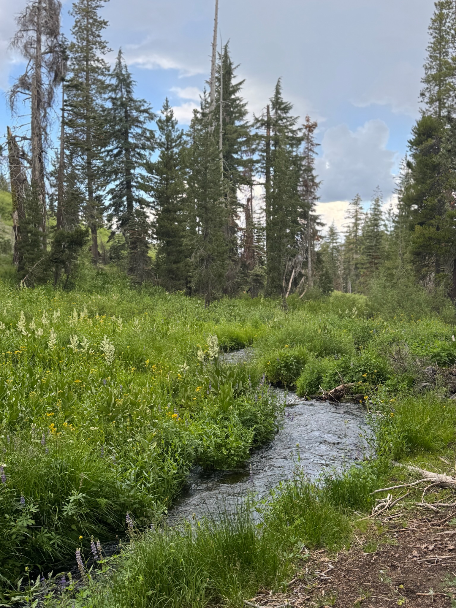 The trail opened up to a huge, lush green field littered with wild flowers, surrounded by rocky mountains and trees with a gentle stream snaking through the grass. We all stopped and stared in awe for a few minutes at the amazing scene in front of us. It wasn’t until now, at the end of the hike, that we finally saw some other hikers. They had stopped in the meadow for a picnic (good choice!). We stayed here taking in the scenery for a while, all agreeing it was one of the most beautiful things we’d ever seen. Pictures just don’t do it justice and even describing it, I can’t detail how beautiful it was. I highly recommend this hike if you’re in the Lassen Volcanic National Park. We thoroughly enjoyed it and being a less popular spot, the seclusion made it that much better!
