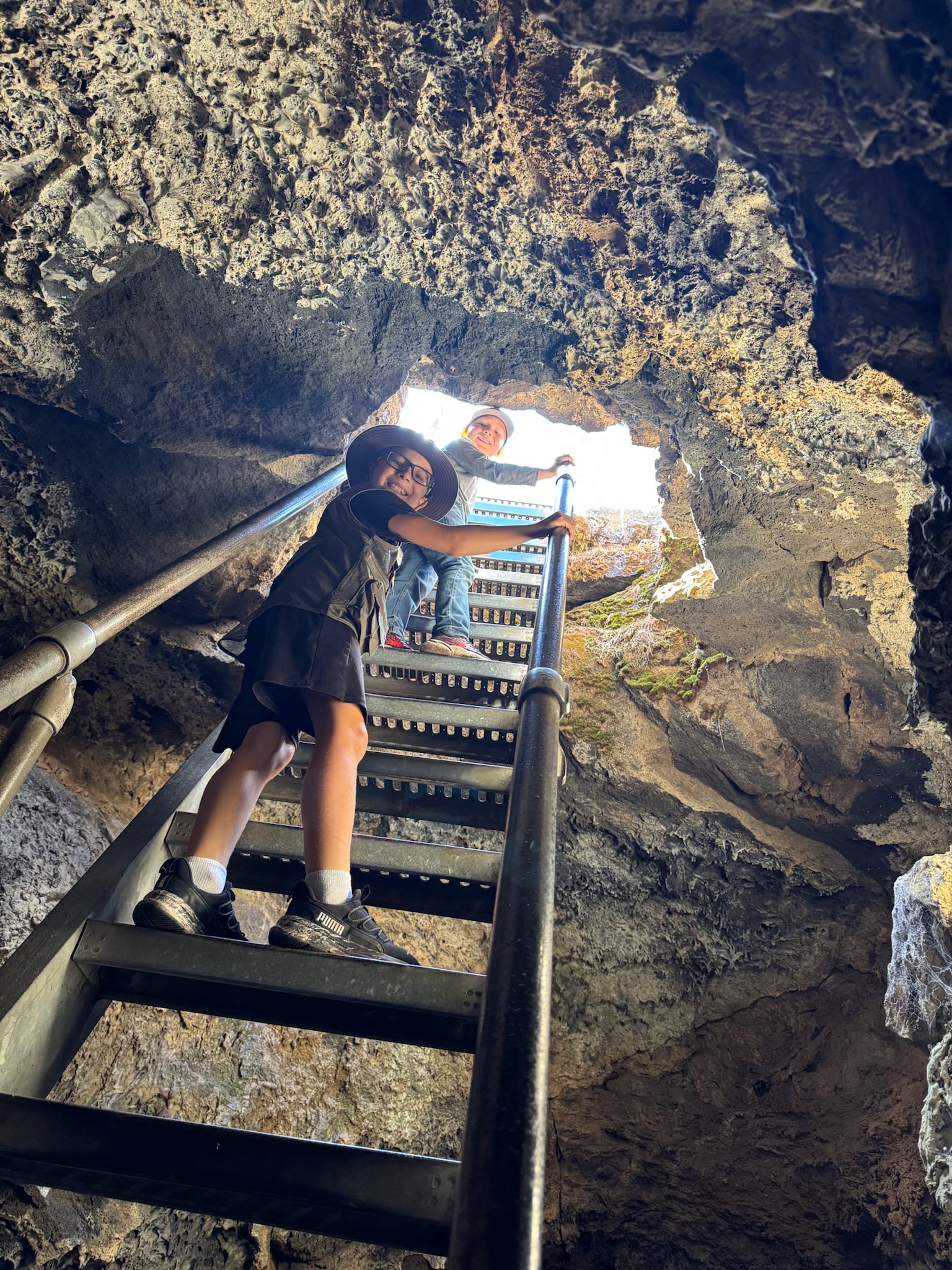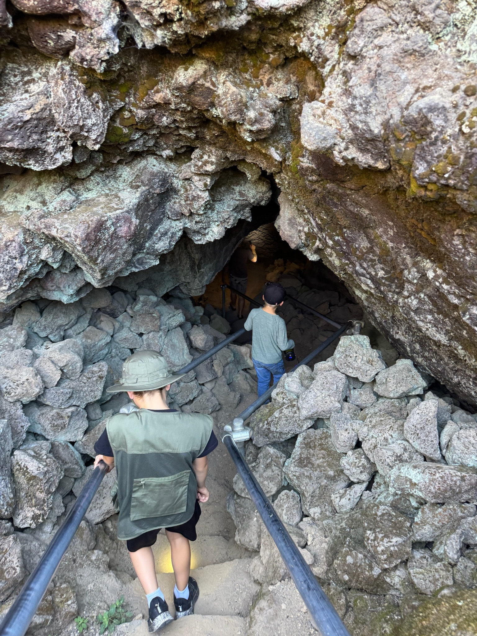When I was a kid, my family went to Oregon every summer to visit my uncle. One thing I remember from Oregon, was walking through the Oregon Caves and it was something I knew my kids would love. Unfortunately, I discovered the Oregon Caves were only open for tours on the weekends and we would be travelling through on a Wednesday. I was disappointed we wouldn’t get to experience that, but quickly found an alternative solution! I found a slight detour about halfway on our way from Old Station, CA to Bend, OR that passed right through the Lava Beds National Monument in Tulelake, CA. I figured we could get our cave experience as well as break up the long drive to the next campsite (this ended up making for a very long travel day!).
