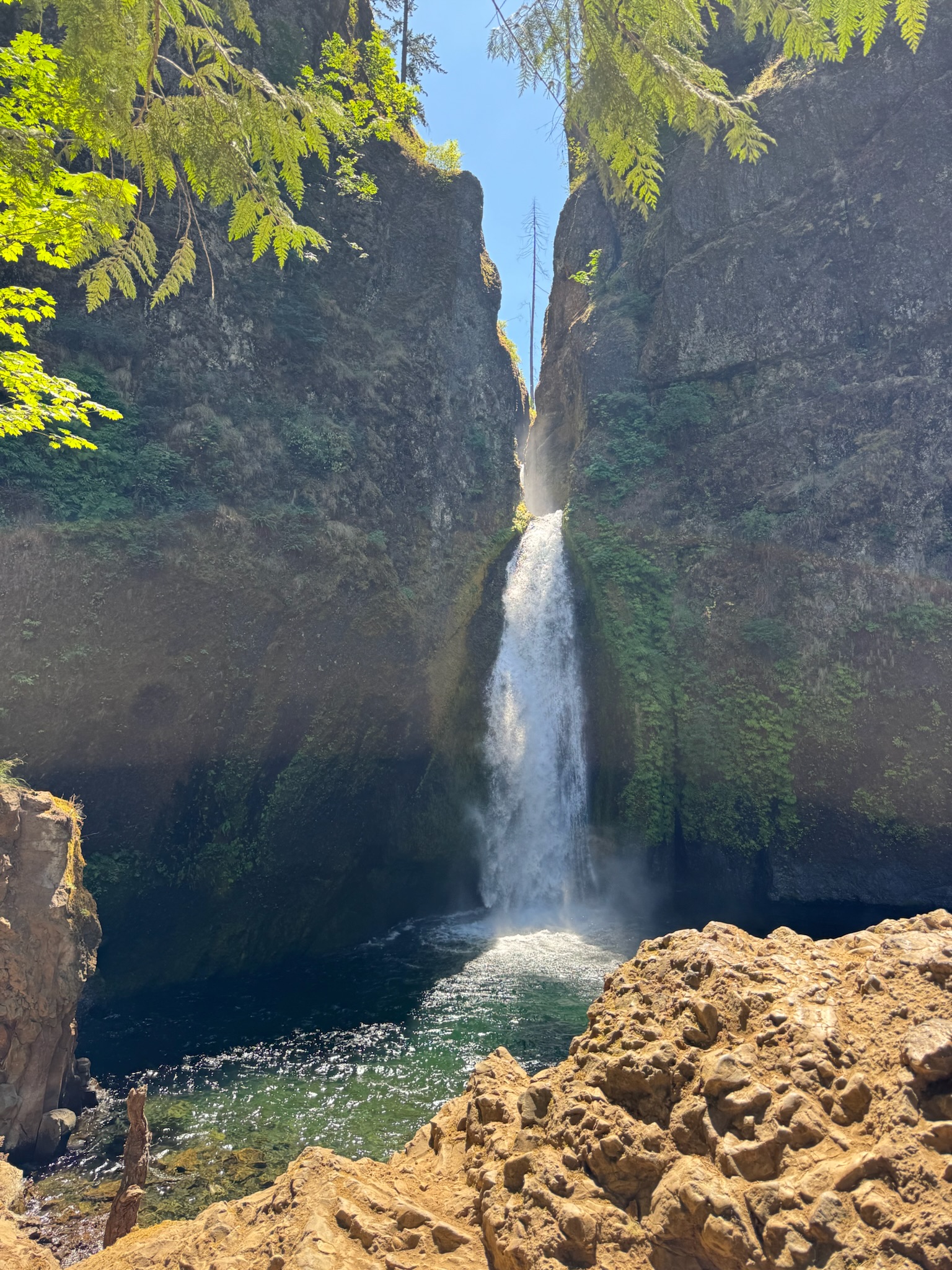 We drove further down the road deciding which waterfall to hike to next. As it was getting to be the afternoon, the small parking lots were filling up quick and we had to pass up many hikes just due to lack of parking. We ended up going to Wahclella Falls, a 2.4 mile round trip hike. The hike was nice and the waterfall at the end was beautiful, but there was a lot of people scattered around the waterfall, some people even swimming in the freezing water, and so we didn’t get the super serene, peaceful vibe like we had near the Oneonta Creek. I think we all preferred Horsetail Falls over this one, but we weren’t disappointed to do both!