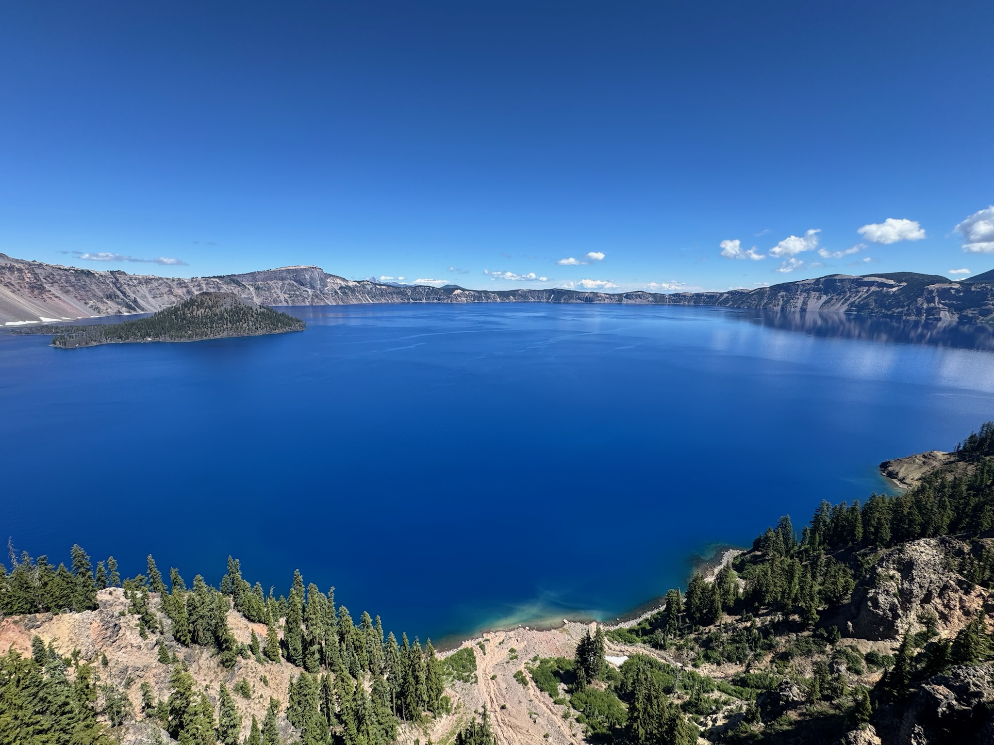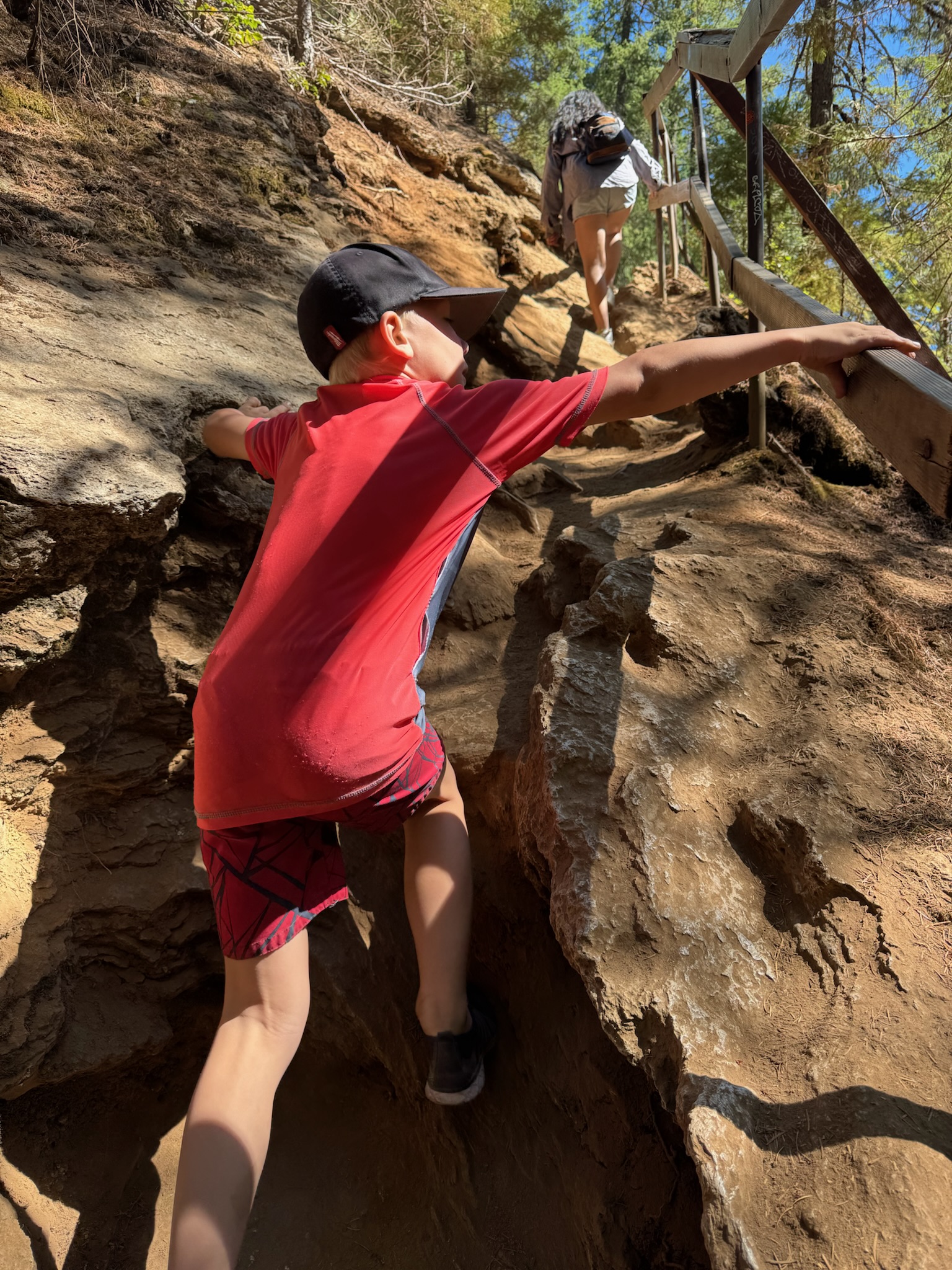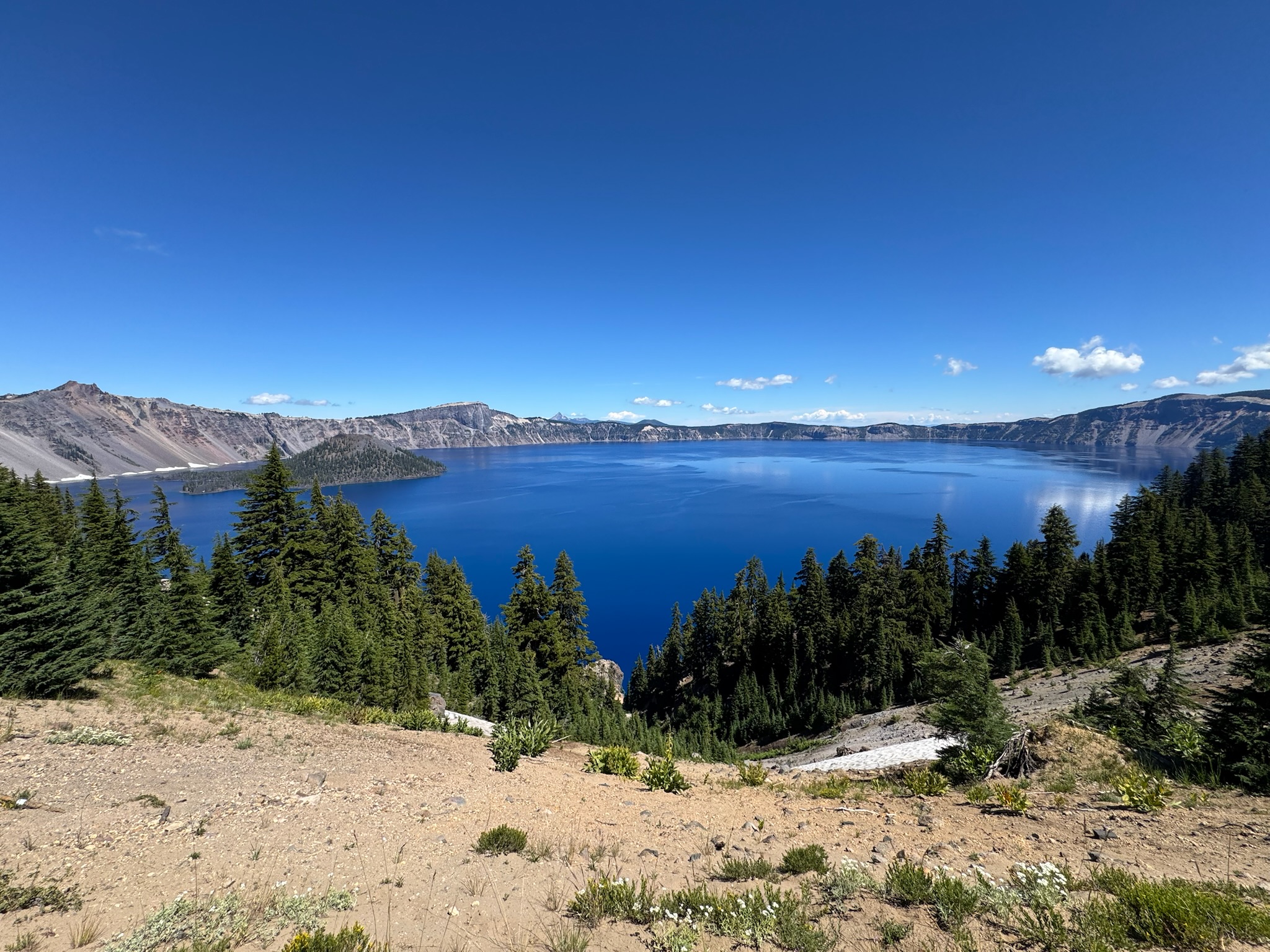 Our first big adventure in this part of Oregon was to check out Crater Lake, and I am glad we did! It was only later that I found out it was the last summer it would be open to get down to the lake before they do some renovations on the trail. We drove to the Rim Visitor Center and toured around the Crater Lake Lodge, once again getting the kids a Junior Park Ranger booklet. This would be the fourth badge they earned this trip! There were a lot of hikes to choose from and had we been able to stay longer (or not had the kids with us the whole time) we might’ve opted to explore more and do many of the hikes, but since we only planned to be here the one day, we wanted to hike down to the water.