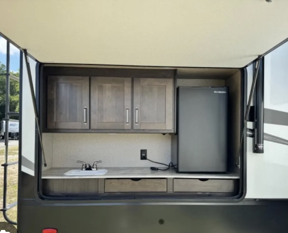 It’s a great setup for the right family. If you spend most of your time in RV parks, enjoy hosting friends outside, and cook outdoors regularly, this is probably a feature you’d love.