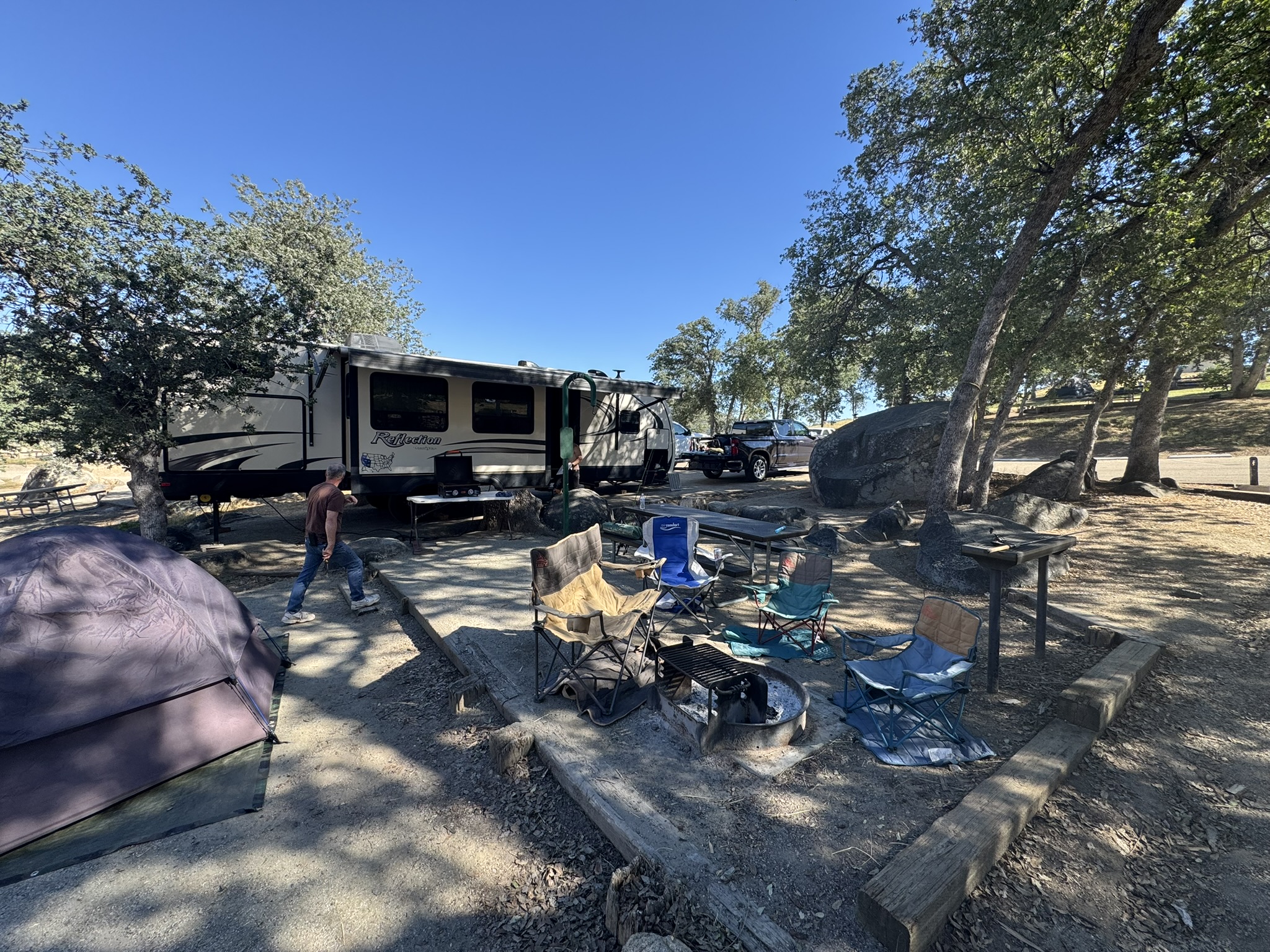 The campground sits within the hills among some permanent lakeside residences just outside of Sanger, California. The surrounding area was very dry, although we did get a bit of rain on a couple of days during our stay.